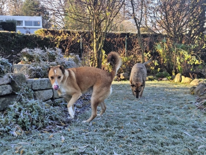 Fonso ist jetzt aufregende 38 Tage bei uns. Er hat das Los gezogen, sich in eine Gruppe von bereits vorhandenen 5 Hunden -u.a. Bono (ehemals Merino Merino nun Bono – Mira – Tierhilfe e.V.) und Ali (ehemals Alana Alana nun Ali – Mira – Tierhilfe e.V.) von denen ich an dieser Stelle herzlich grüßen soll – hineinarbeiten zu müssen. Deren Begeisterung über den neuen Mitesser wollte gar keinen Anfang nehmen. Ihm wurde anfangs nichts geschenkt. Aber der Reihe nach.