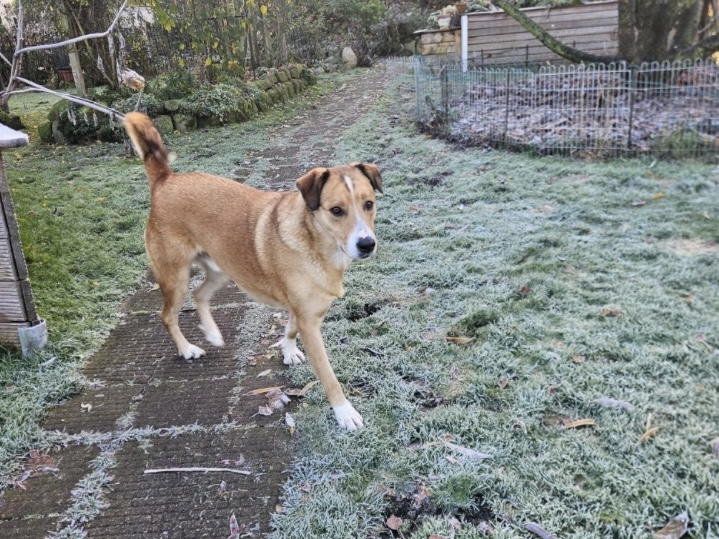 Alfonso kommt sofort an den Zaun, wenn man zu ihm kommt. Geht man in den Zwinger ist er schüchterner.