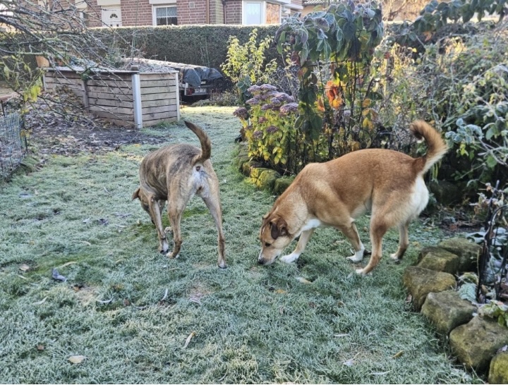 Die anderen Hunde hatten Fonso am Anreisetag einmal kurz und höchst verunsichert beschnuppert und hatten sich dann in einer seltenen Einigkeit geschlossen ins Wohnzimmer zurückgezogen. „Mit dem wollen wir nichts zu tun haben!“ „Wieso das?“ „Aber es war doch alles gut, so wie es war!“ „Was hat sie sich dabei nur gedacht?“ „Der stinkt!“ Das waren die Nachrichten, die an sorgenvoll gerunzelten Hundestirnen abzulesen waren. Ab Tag drei begann dann so langsam die Durchmischung und die war nicht immer freundlich. Bei einer Streitigkeit um ein liegen gebliebenes Stückchen Möhre hat es zwischen Fonso und Nino auch mal kurz gerappelt. Ab dem fünften Tag nahm Ali die Sache dann in die Hand, flankierte Fonso bei jedem Schritt wie eine Fleisch gewordene Leitplanke und maßregelte ihn mit beständigem Knurren. Das war extrem nervenzehrend für alle Beteiligten. Dieser Zustand zog sich über die nächsten 1,5 Wochen mit gleichbleibender Intensität. Die anderen Hunde gingen ihm so gut wie möglich weiter aus dem Weg. Jedoch gab es im Garten zwei Scharmützel, bei denen Nino Fonso weggejagt und auch einmal in den Hintern gezwickt hat. Das hat Fonso so eingeschüchtert, dass er fortan nicht mehr in den Garten wollte, was wiederum unsere gerade einigermaßen in den Griff bekommene Stubenreinheit torpedierte.