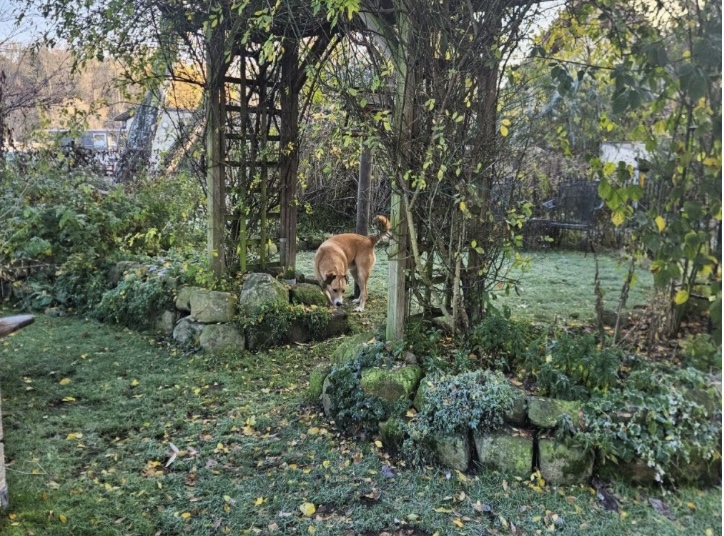 Derzeit arbeiten wir daran, die verlorene Sorglosigkeit wieder aufzubauen, damit er sich wieder mit der ganzen Gruppe im Garten bewegt.