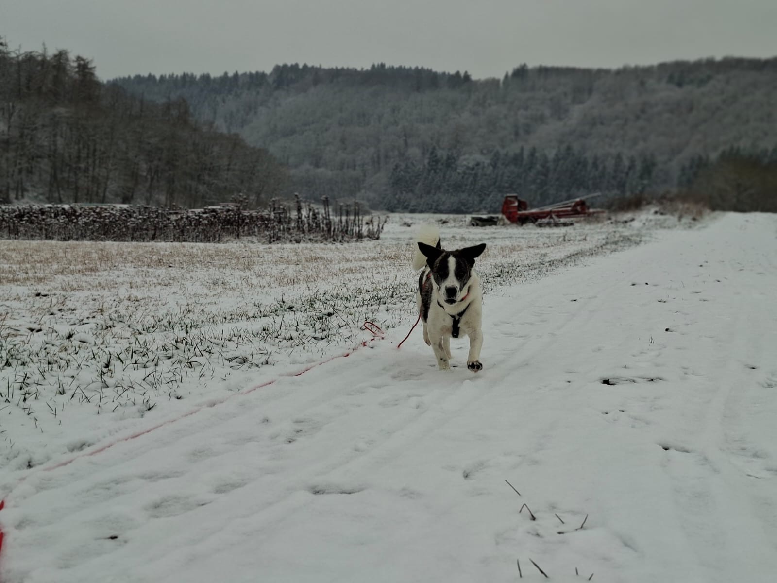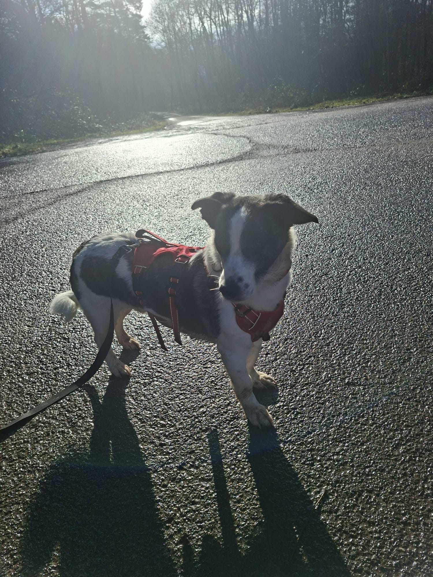 Ich laufe gut an der Leine und erkunde gerne neue Wege. Mit anderen Hunden verstehe ich mich gut und die ” Leinenpöbler” lasse ich Links liegen. Viele Autos auf einmal machen mir noch Angst, aber ich sehe die Sicherheit bei dem Menschen.