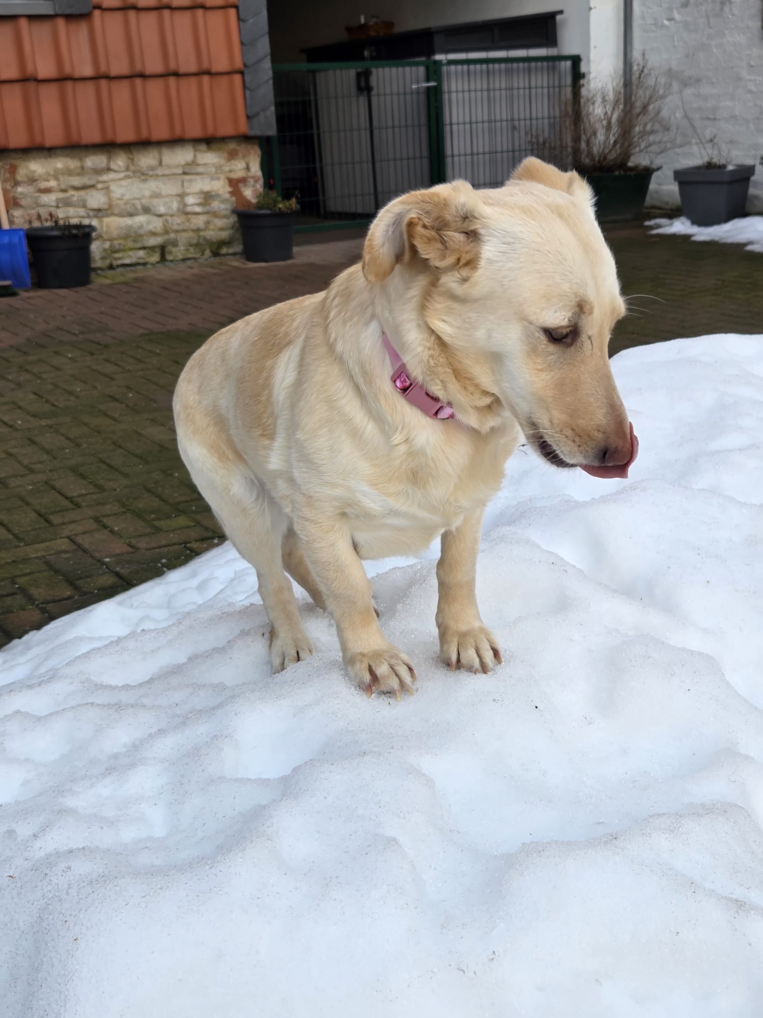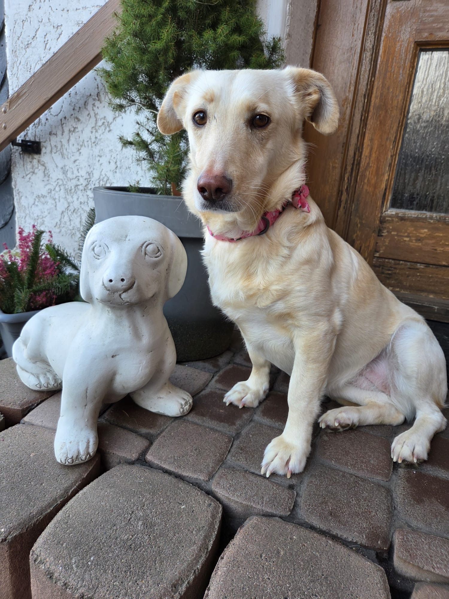 Stubenrein ist Biene bereits, und auch Treppen stellen für sie kein Hindernis mehr dar. Langsam entdeckt sie die Freude am gemeinsamen Spielen mit den anderen Hunden. Das Spazierengehen an der Leine ist noch neu für sie, wird aber konsequent geübt und entwickelt sich stetig positiv. Momentan fühlt sie sich im Garten noch sicherer, weshalb sie dort ihre Geschäfte erledigt.