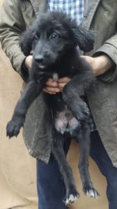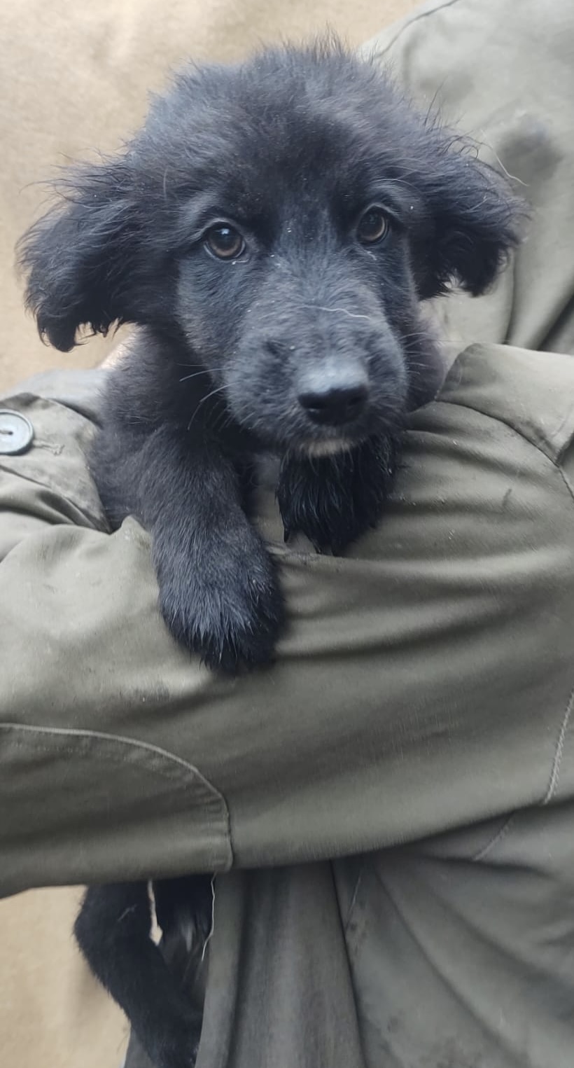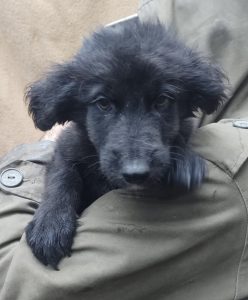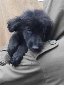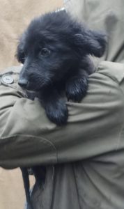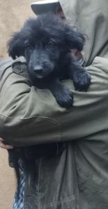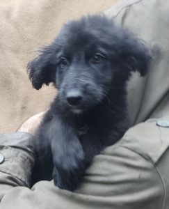 Bilbo wurde unter lauter großen Hunden auf einem Waldparkplatz ausgesetzt. Die erste Zeit hat Luiza ihn, wie die anderen Hunde auch nur gefüttert, da wir viel zu voll sind. Es sind auch derzeit viele Welpen bei uns. Aber er kam dort nicht klar zwischen den großen Hunden und es wurde dieses Jahr auch sehr früh kalt und regnerisch. So nahm Luiza Bilbo mit.