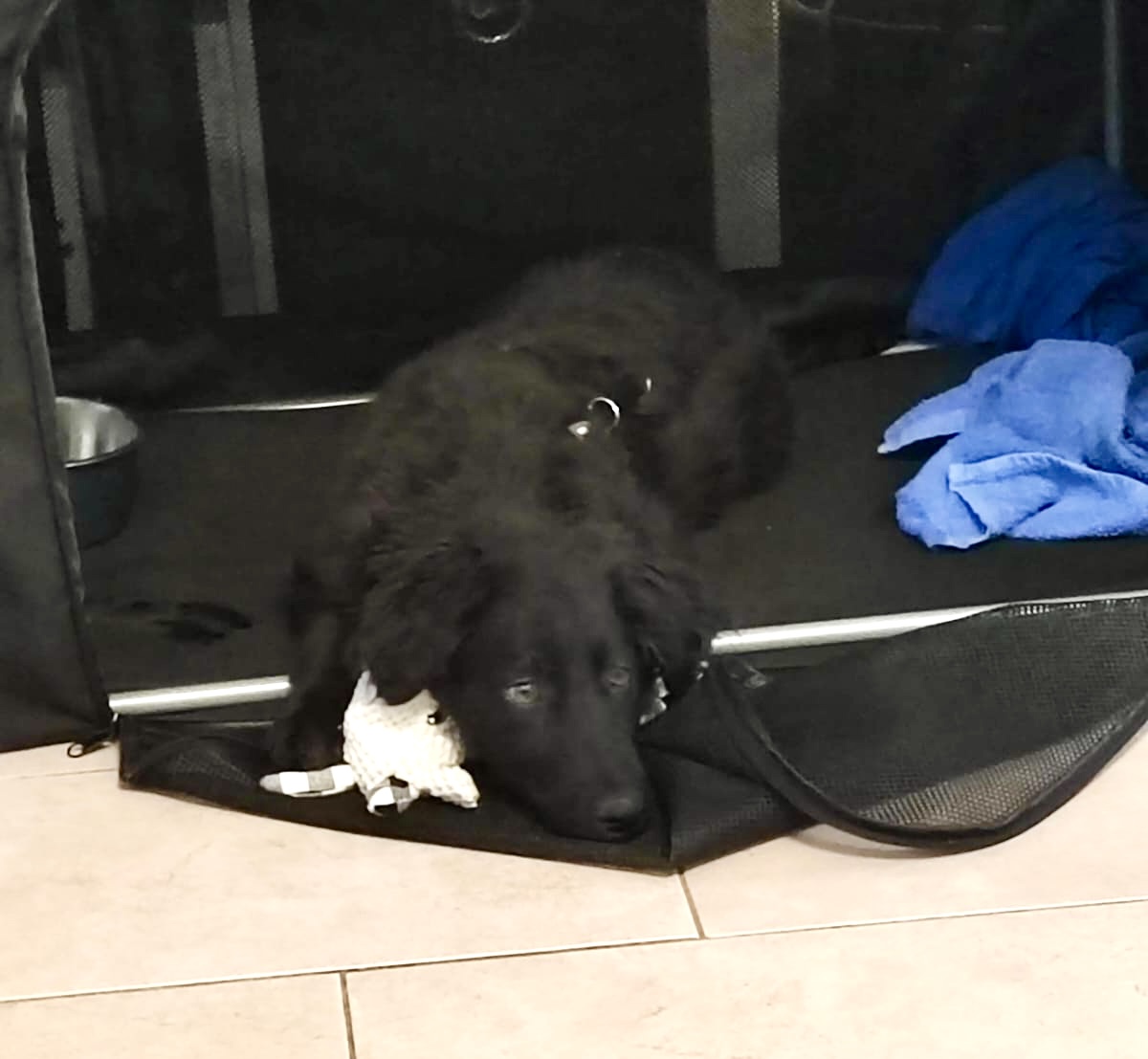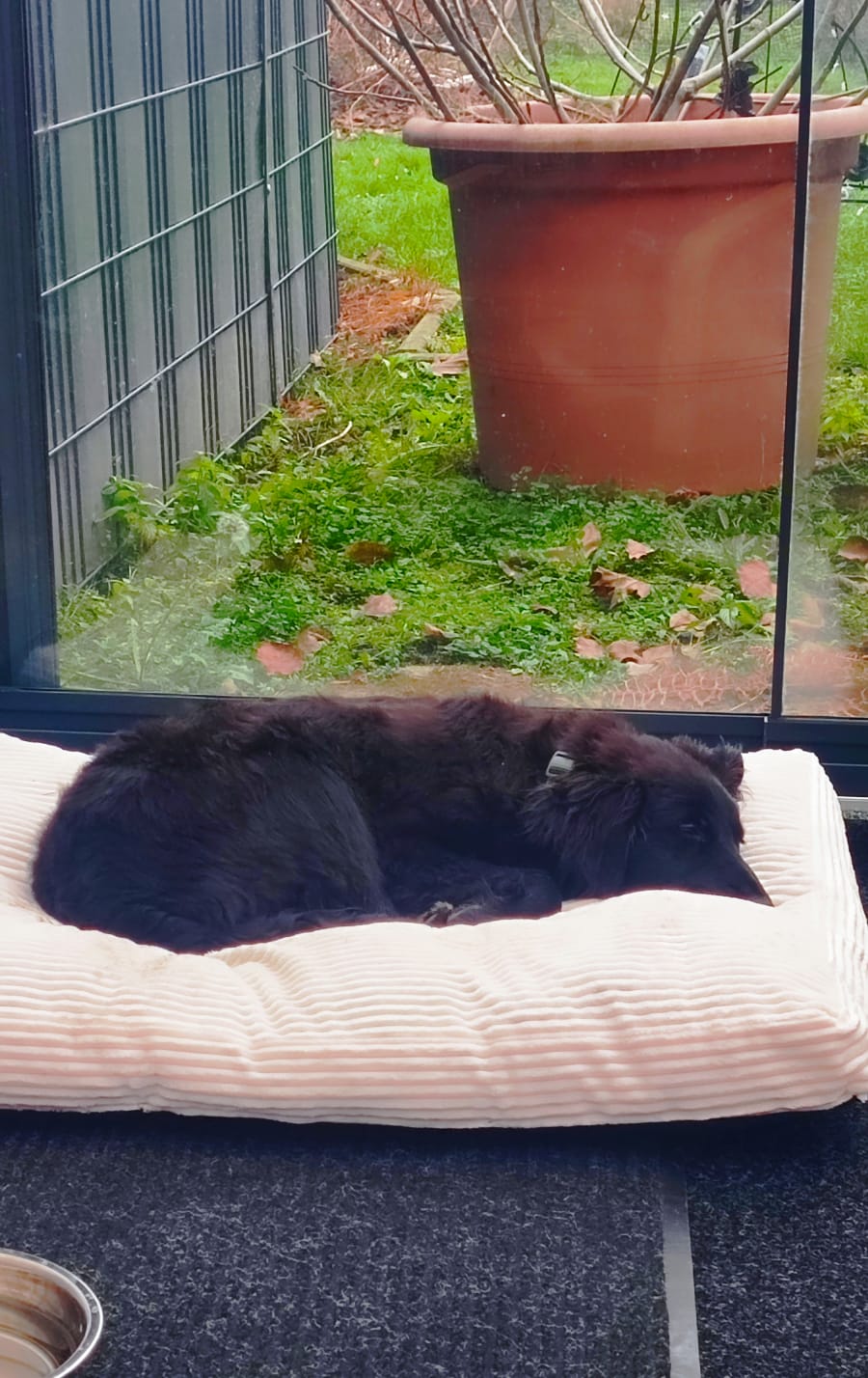 Er ist im warmen Auto sofort eingeschlafen. Bilbo zeigt sich bei uns, als ein verspielter aufgeweckter Welpe. Er mag auch die Menschen dort gerne.