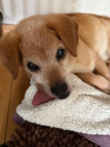 Stubenrein ist er derzeit noch nicht verlässlich.  Er bleibt derzeit im Haus und im grossen eingezäunten Garten, da er sich erholen muss. Er hat sehr schlechte Zähne und wir hoffen, dass er gut gepäppelt werden kann, dass er Narkosefähig wird. Die schlimmen Zähne müssen raus. Er hat auch Probleme beim fressen.
