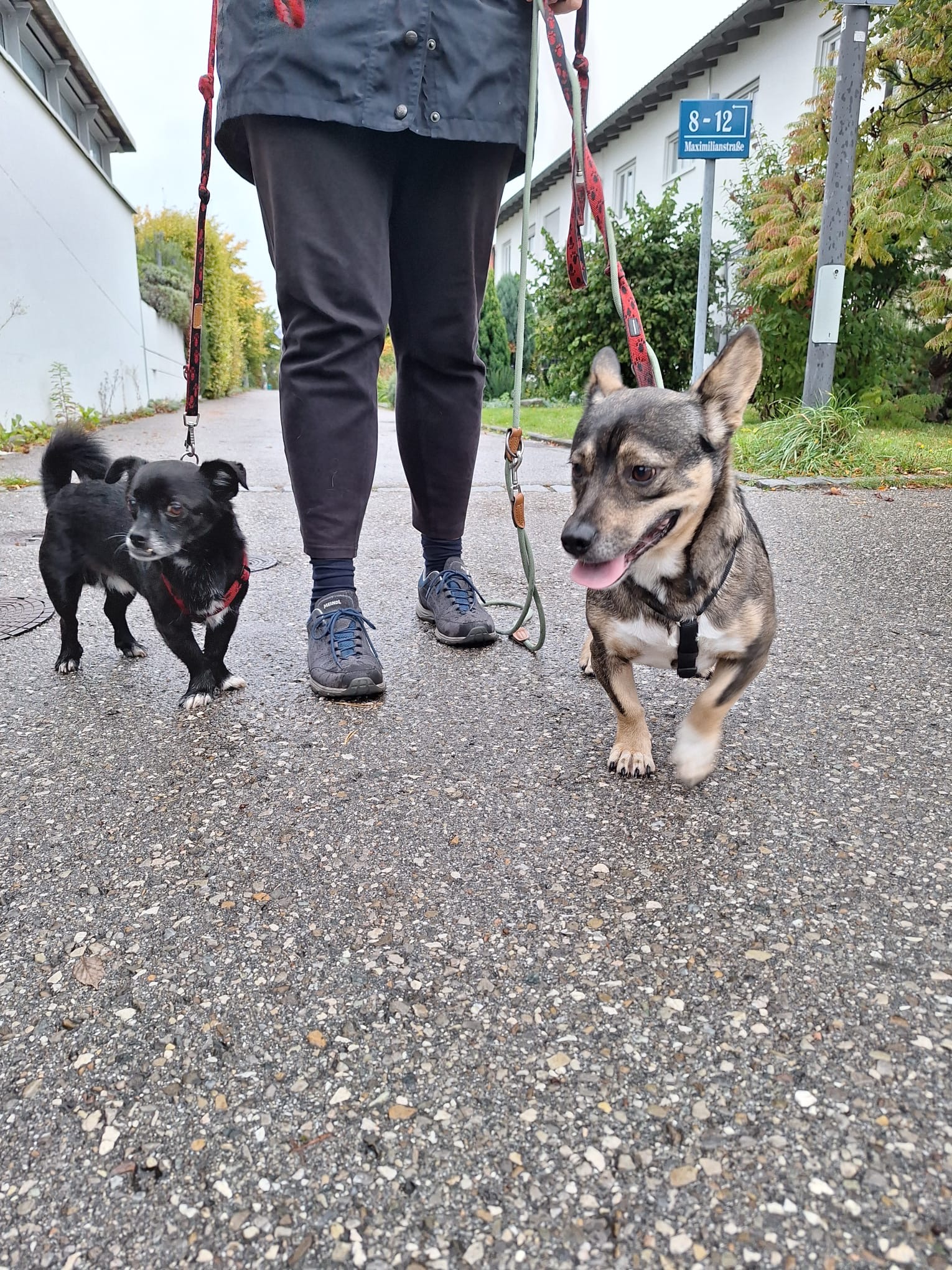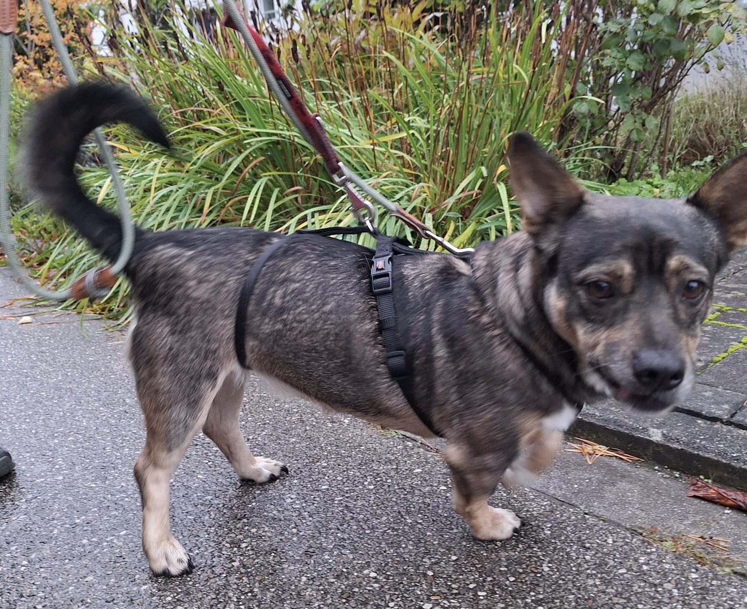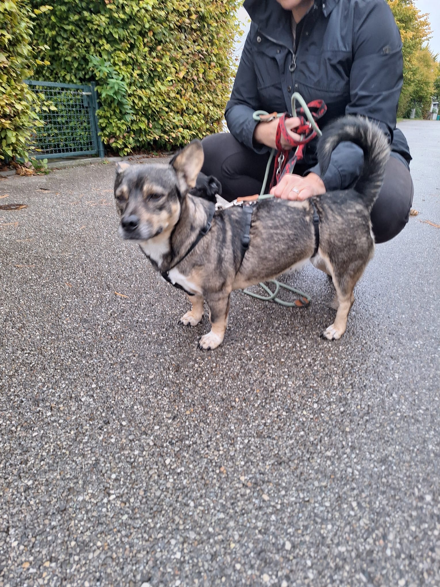 Das Signal Decke hat sie sehr schnell gelernt. Sie kuschelt wahnsinnig gern und sucht Knuddeleien sehr. Leinelaufen muss sie natürlich noch lernen, sie macht das für den 2. Tag schon recht gut.