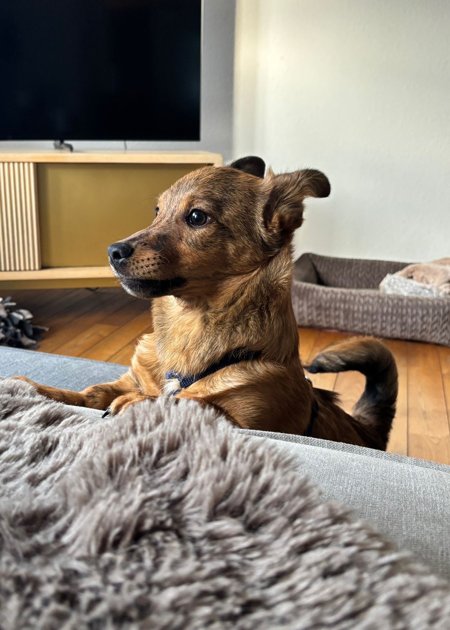 Lenni ist ein unglaublich aufgeweckter, aktiver und neugieriger Hund, der viel Freude in unser Leben bringt. Er versteht sich mit anderen Hunden gut, hat Lust viel zu spielen und ist auch den Menschen gegenüber sehr zugewandt und verschmust. Wir sind ganz überrascht davon, wie schnell er sich in unseren Alltag einfindet und jeden Tag dazulernt. Wir gehen aber auch davon aus, dass seine Pflegemama hier schon einige Weichen richtig gestellt und es uns damit leicht gemacht hat.