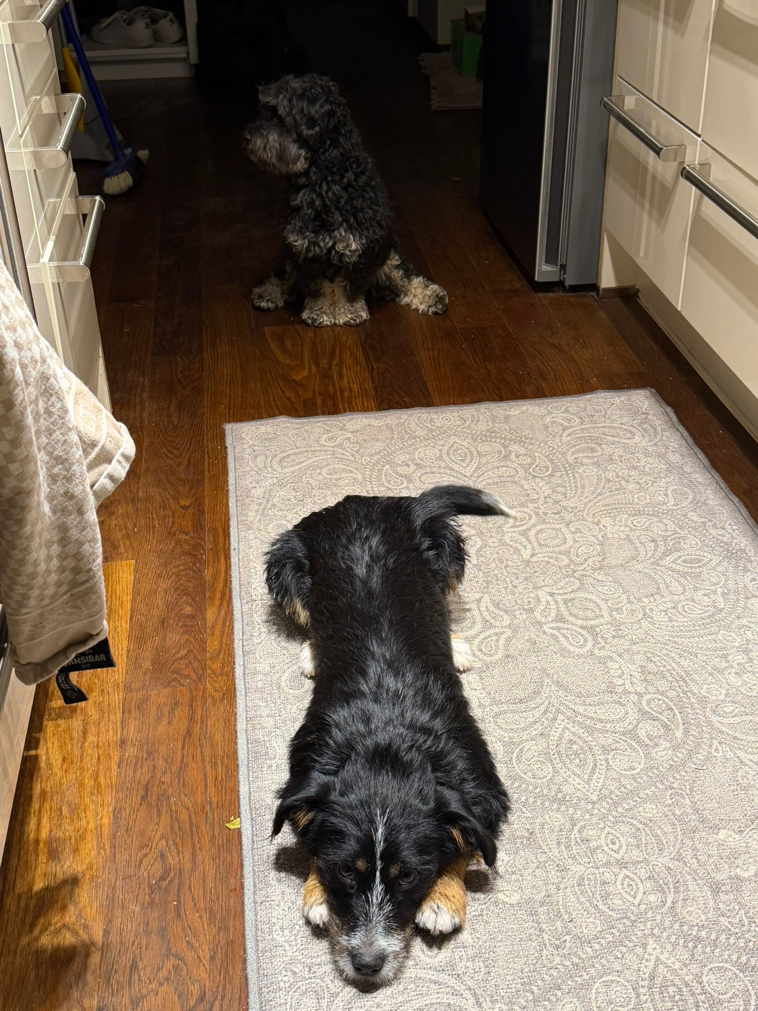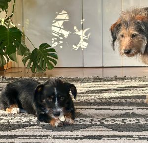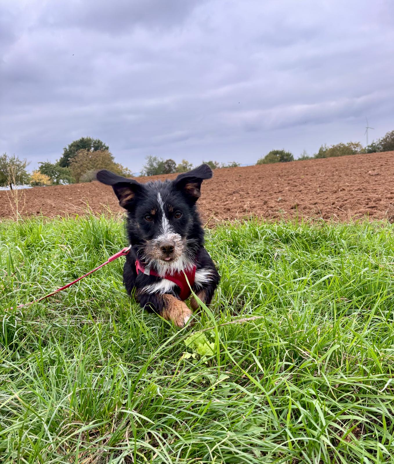 Sie bleibt mit der vorhandenen Hündin auch schon 2 bis 3 Stunden gut alleine.