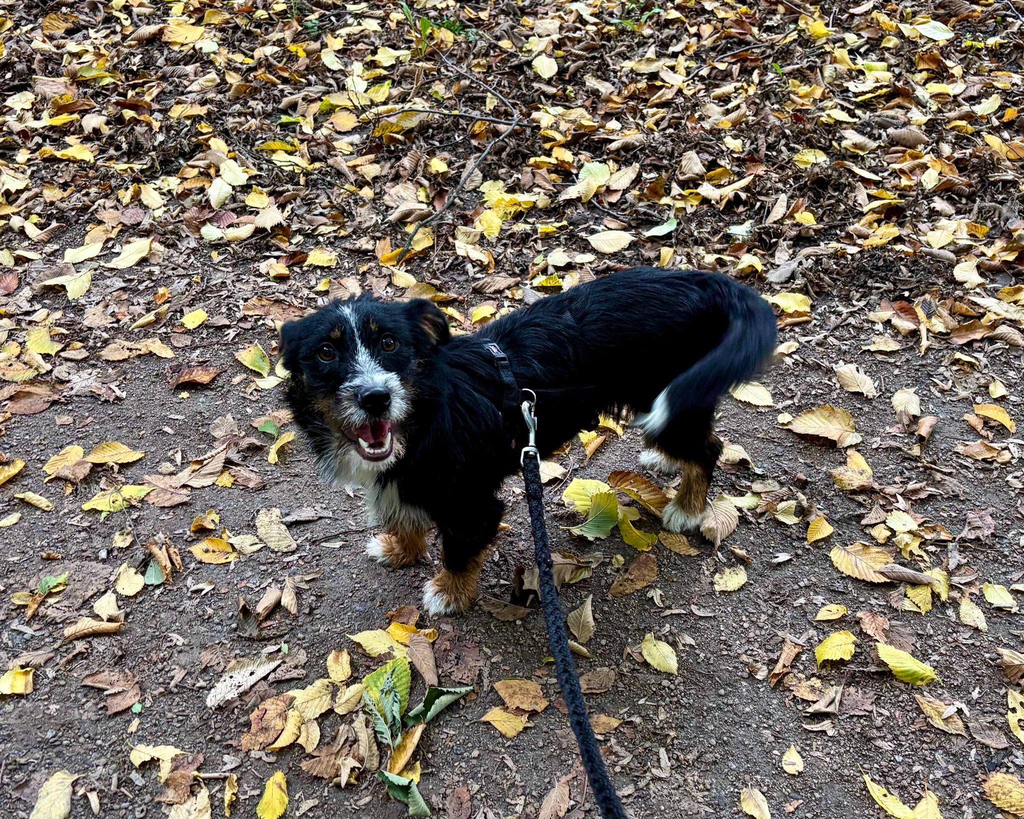 Donika läuft gut an der Leine und ist auf der Pflegestell stubenrein.