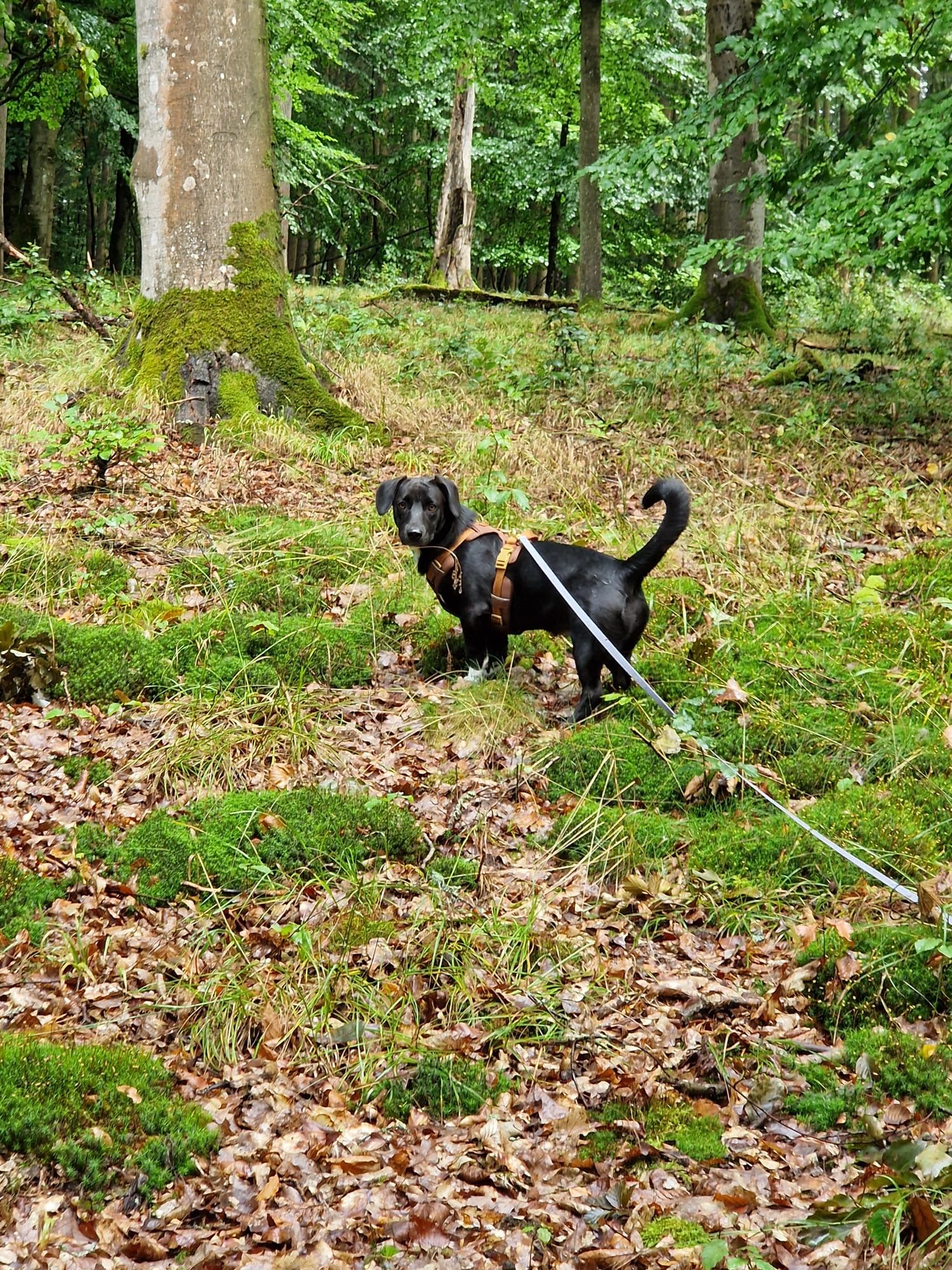Besonders schön ist, dass sie schon Freundschaft mit der Nachbarhündin geschlossen hat. Mit anderen Hunden und auch mit Katzen ist sie sehr respektvoll – das macht den Umgang mit ihr richtig angenehm. Menschen gegenüber ist sie zurückhaltend und freundlich. Heute waren wir das erste Mal im Wald spazieren, und man merkt jetzt schon, dass das bestimmt ihr zweites Wohnzimmer werden wird.„
