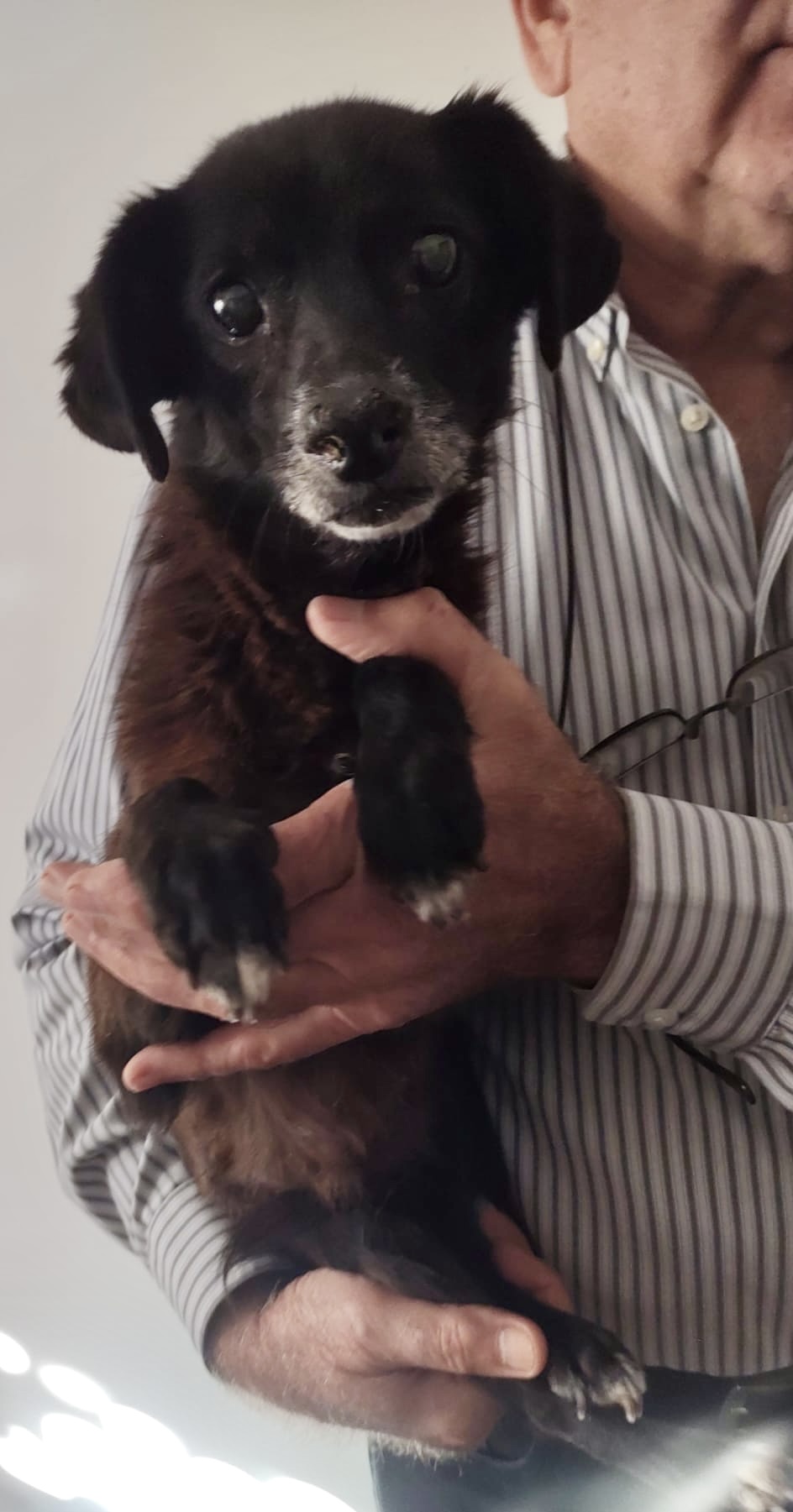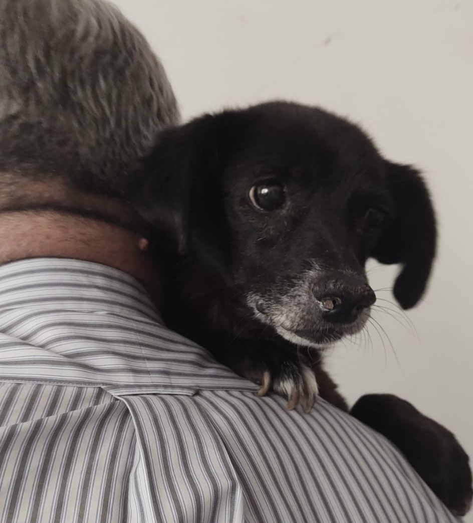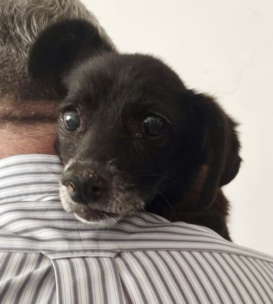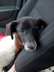 Ella wurde völlig abgemagert und entkräftet am Straßenrand gefunden. Ein kleines älteres Hundemädchen, sicherlich ausgesetzt. Sie hat auch gefroren und war froh, dass sie ins warme Auto gesetzt wurde.