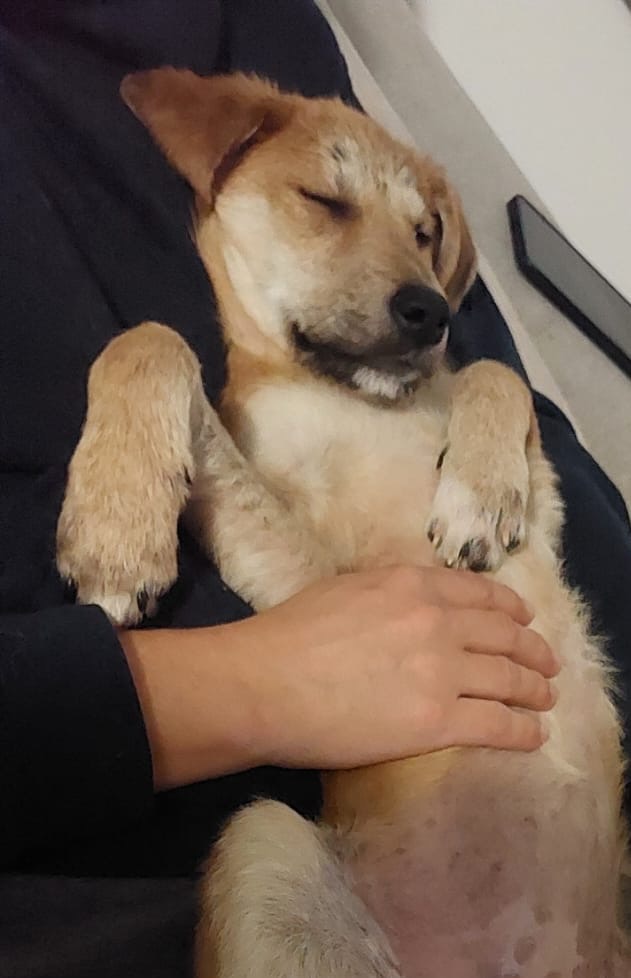 Emma lebte in einem Rudel von anderen Straßenhunden. Wir denken sie hätte den Winter wahrscheinlich nicht überlebt. Sie hat Hautprobleme und ist wahrscheinlich angefahren worden und hat deshalb Probleme beim Laufen.