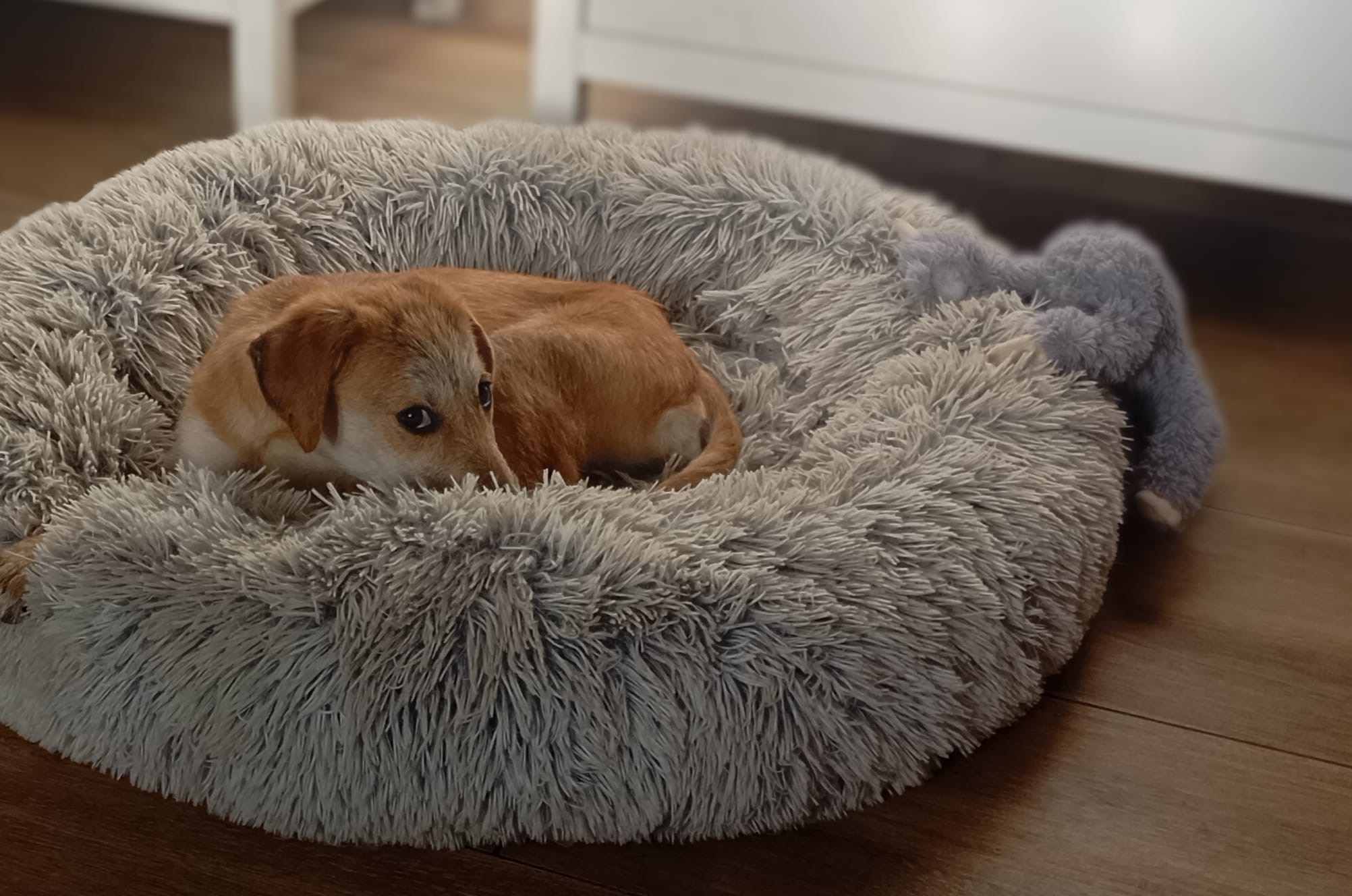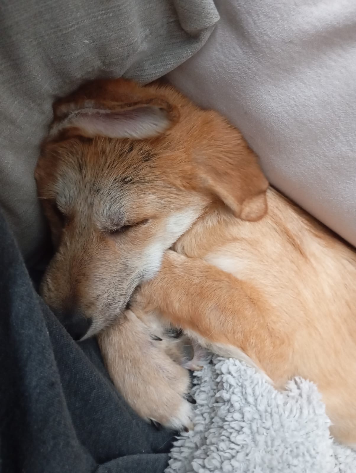 Emma ist gut auf ihrer Pflegestelle in 57647 Alpenrod angekommen. Den ersten Tag hat sie sich unter dem Schrank versteckt.