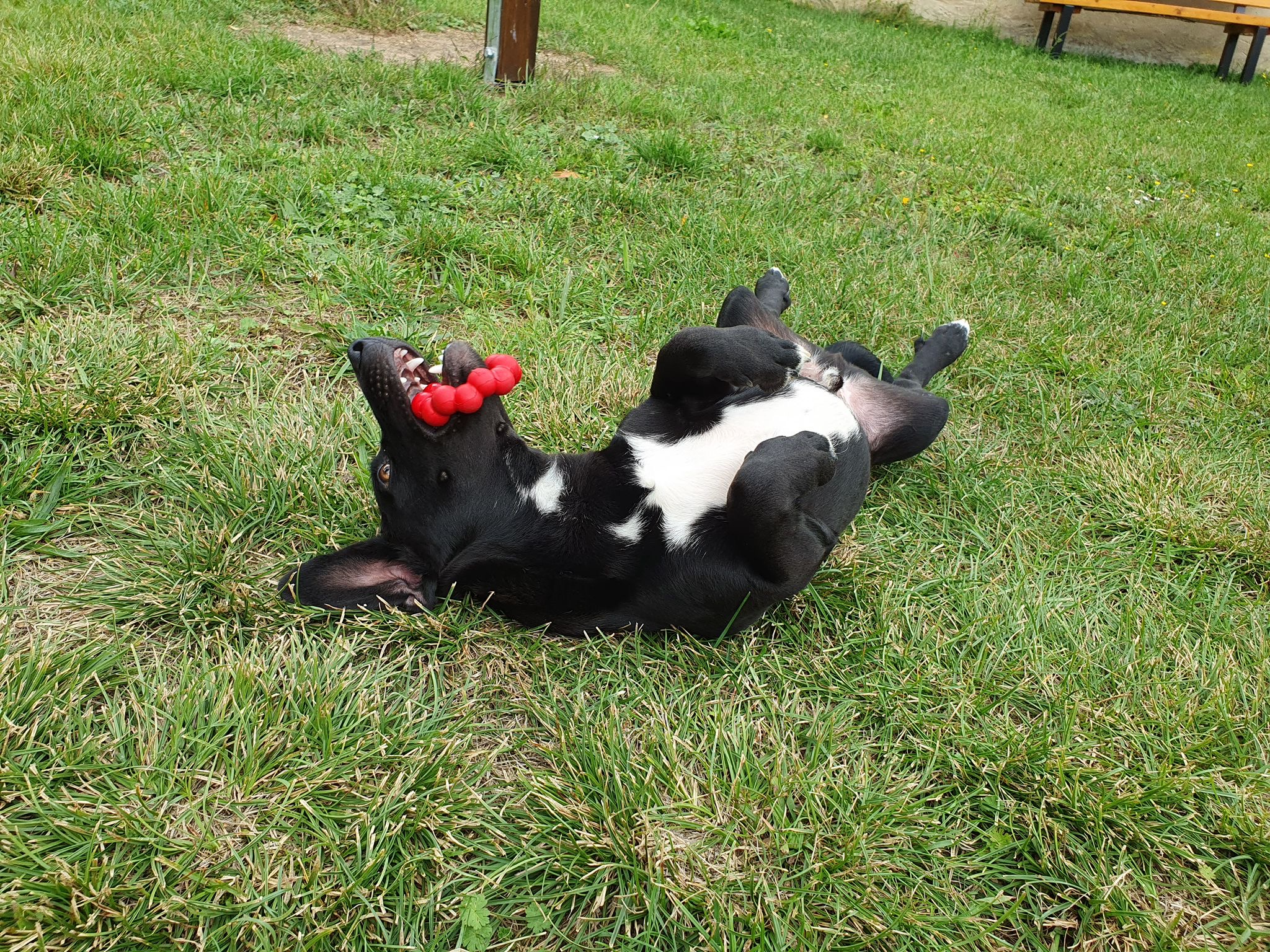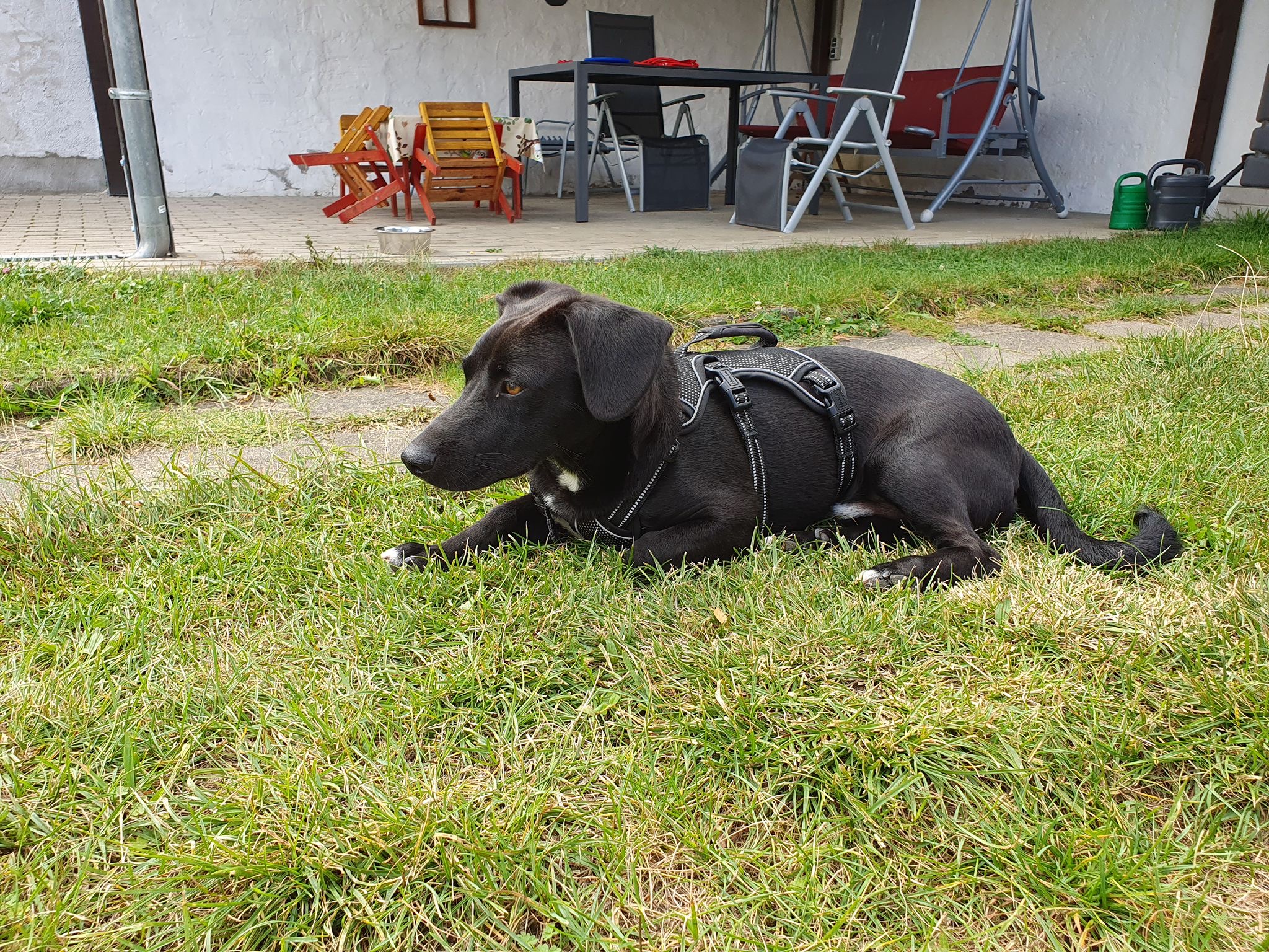 An manchen Tagen hat er natürlich auch seinen eigenen Kopf und hat dann z. B. eben auch mal keine Lust, ins Haus zu kommen, wenn Frauchen und Herrchen rufen. Auch dass Besucher und Leute, die am Zaun vorbeigehen, nicht angebellt werden sollen, muss Enno noch lernen. Er ist bei fremden Leuten eben noch sehr unsicher. Aber das kriegen wir sicher noch hin. 😉