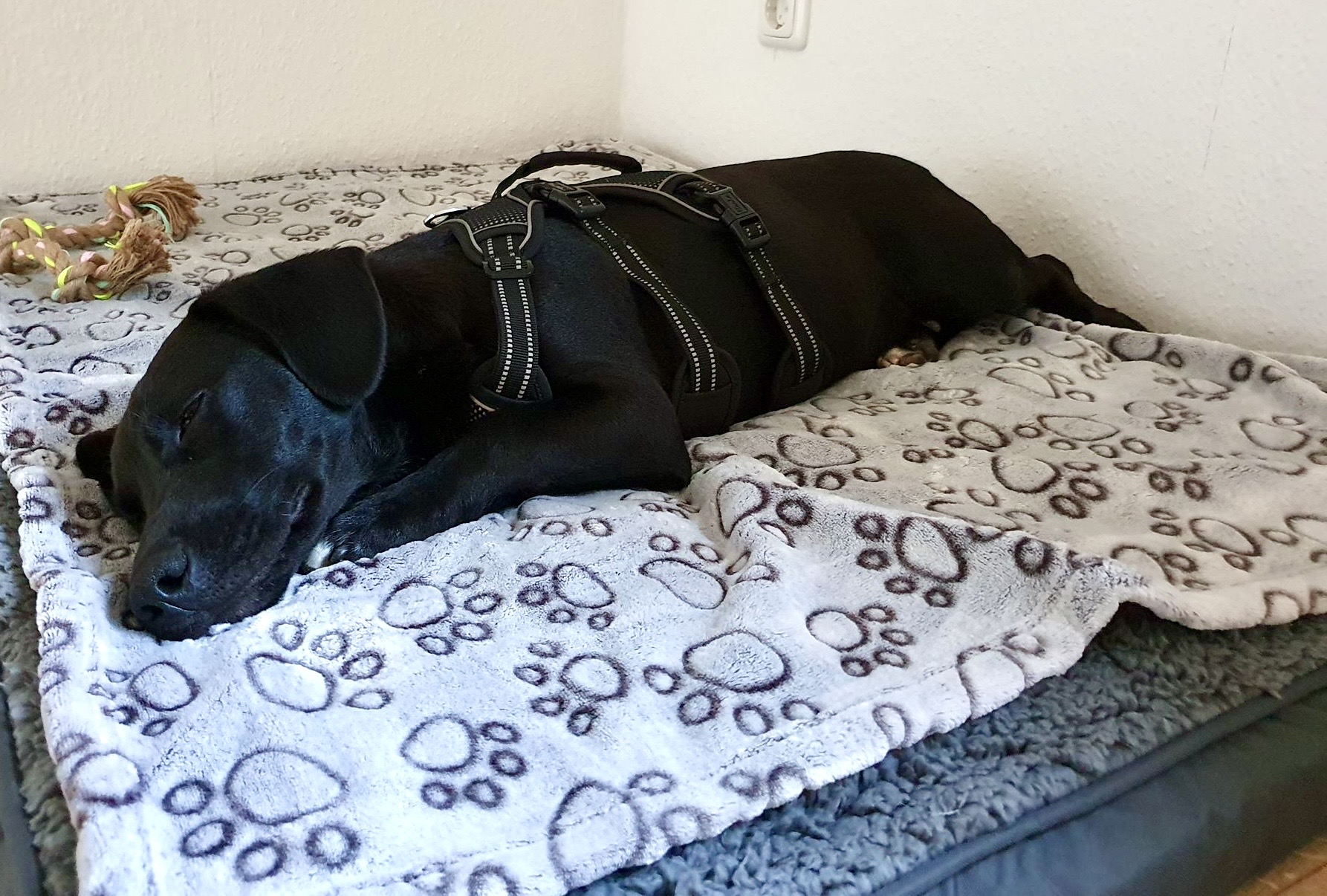 „Enno ist nun seit 2 Wochen bei uns und er hat uns – ehrlich gesagt – ziemlich überrascht. Er ist seit dem ersten Tag stubenrein, das Gassigehen funktioniert schon richtig gut und er hat auch recht schnell Vertrauen zu uns gefasst. Ebenso das Alleinbleiben klappt bereits sehr gut. Kommt man nach 2h zurück ins Haus, liegt Enno ganz entspannt auf seinem Platz – manchmal schläft er dann auch noch. 😍