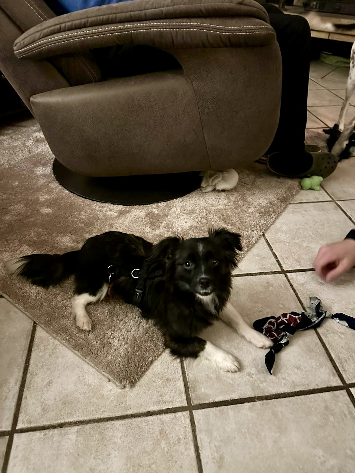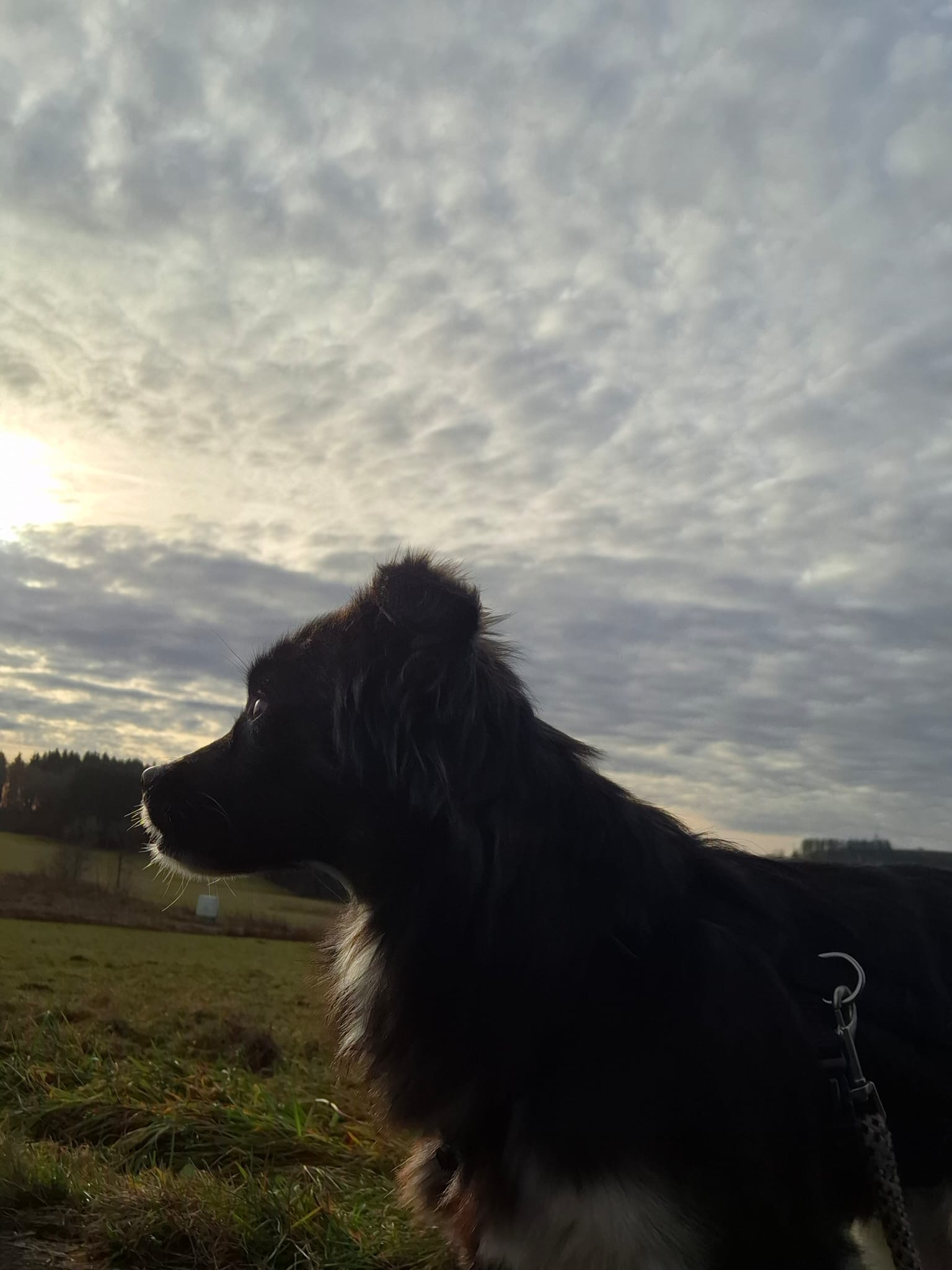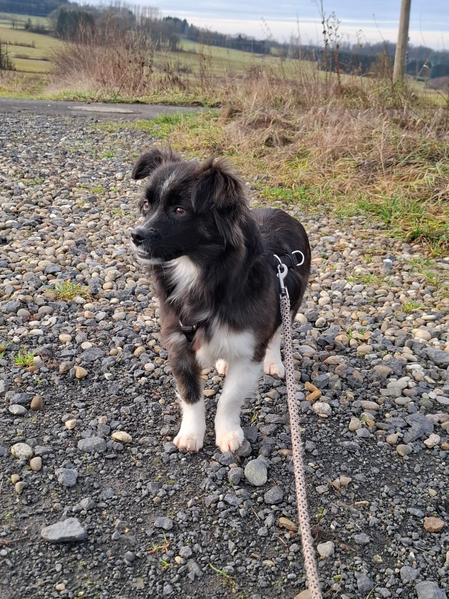 Obwohl ihr Geschirr und die Leine echt gruselig vorkommen, geht sie schon sehr gut mit. Spaziergänge werden im kleinsten geübt, da ihr die Umgebung noch etwas zu viel erscheint und sie dann einfach sitzen bleibt.