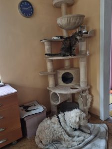 Filia hat sich gut auf ihrer Pflegestelle eingelebt und genießt dort sehr zufrieden ihr neues Leben mit den anderen Fellnasen und Katzen. Auch zum Menschen hat sie schnell Vertrauen aufgebaut und lässt auch Streicheleinheiten zu.