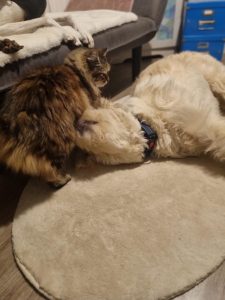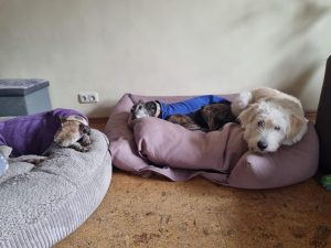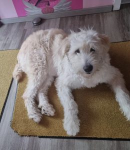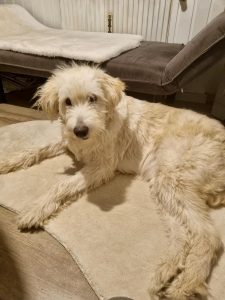 Sie lernt gerade die Unterschiede zwischen Möbel und Einrichtungsgegenstände und Spielsachen kennen – der Teppich wurde leider „rund gekaut“ 😉. Sie mag den Garten und auch das Spazierengehen schon gerne und daher suchen wir für sie mobile Menschen mit eingezäuntem Garten.