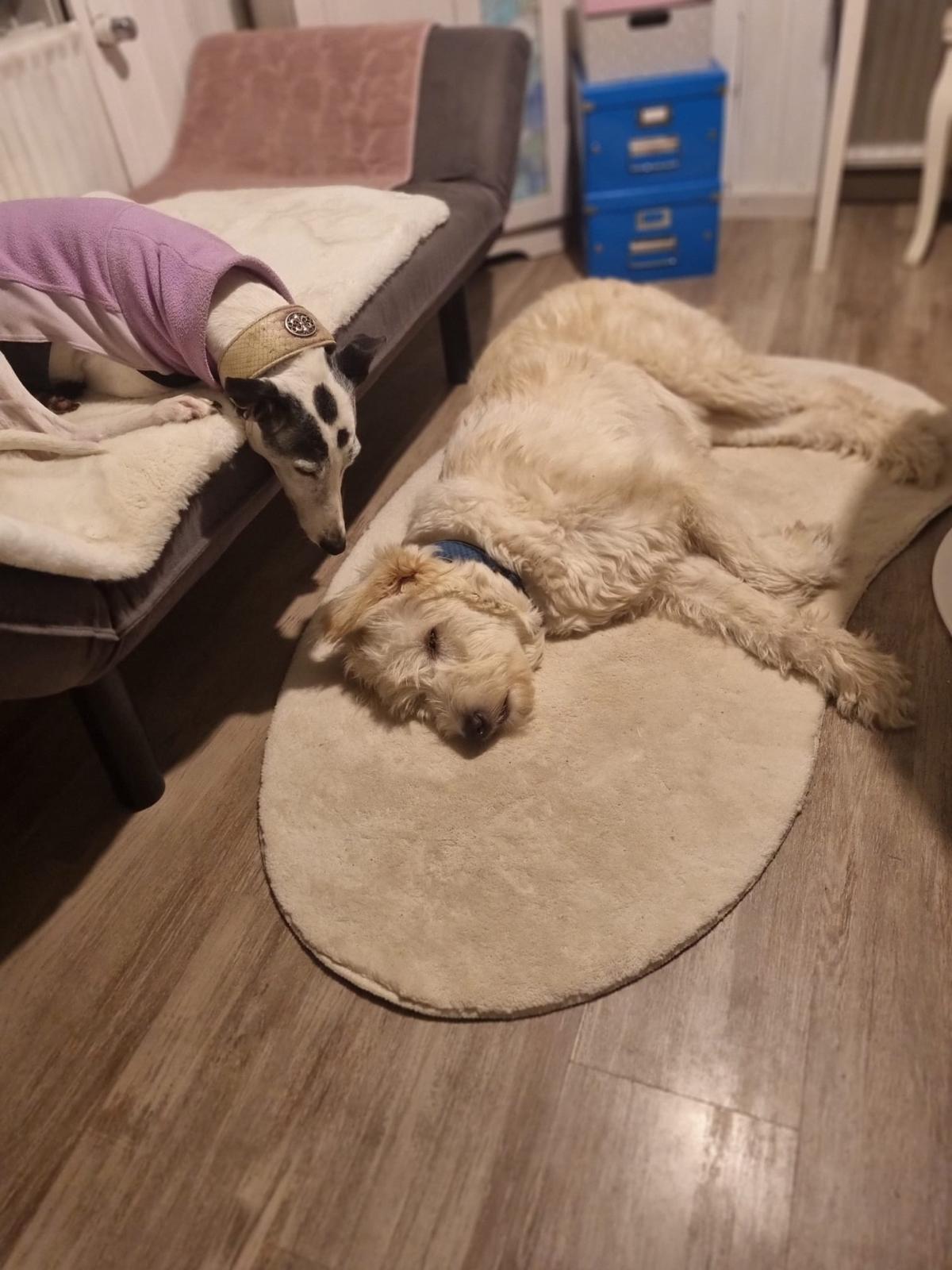 Sie lernt gerade die Unterschiede zwischen Möbel und Einrichtungsgegenstände und Spielsachen kennen – der Teppich wurde leider „rund gekaut“ 😉. Sie mag den Garten und auch das Spazierengehen schon gerne und daher suchen wir für sie mobile Menschen mit eingezäuntem Garten.