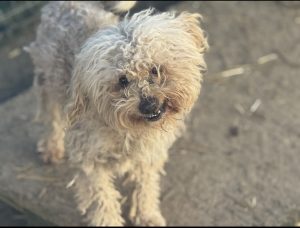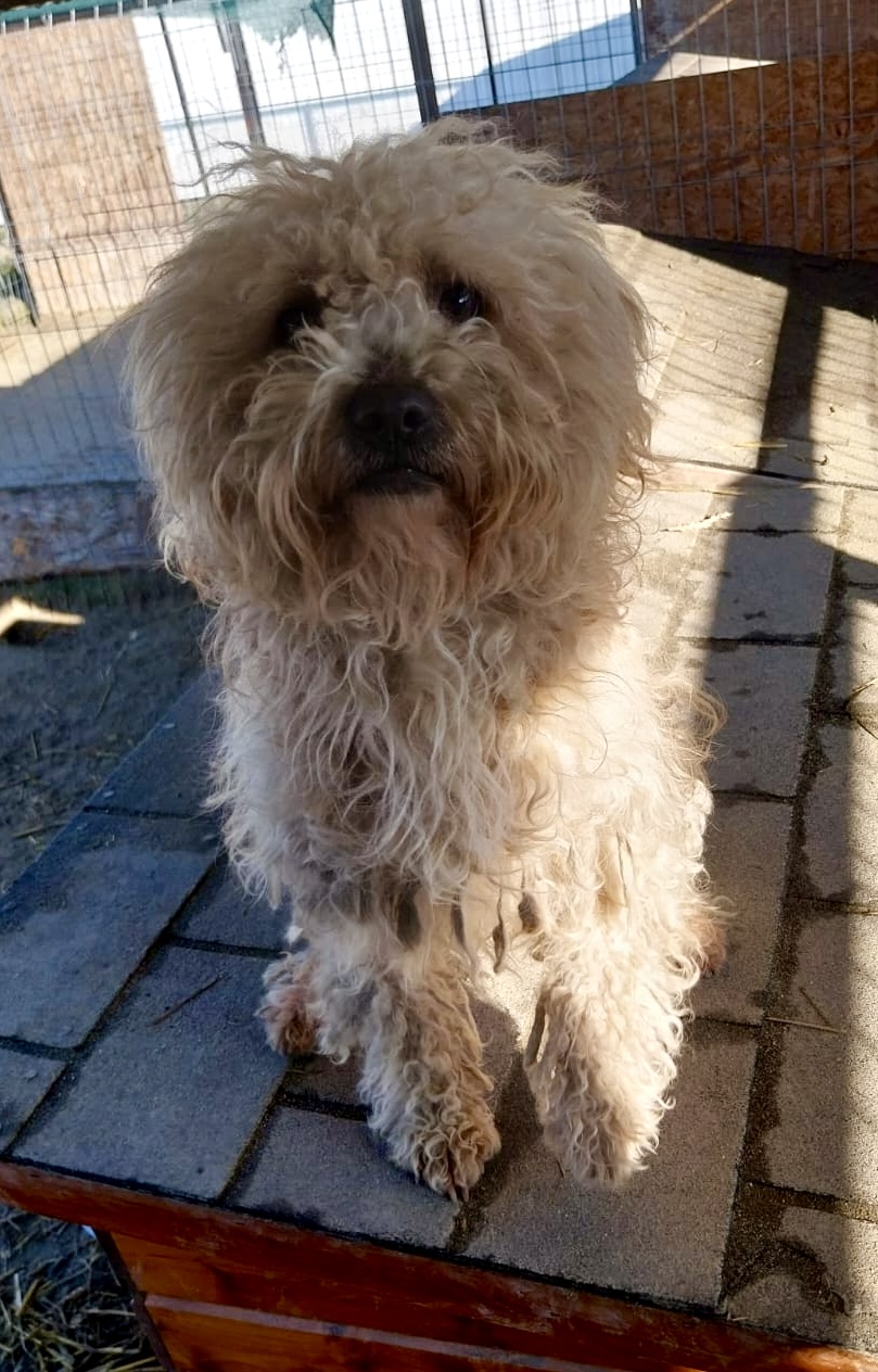 Auch Fluffy war ein ungewollter Hund. Mit verfilztem Fell war sein Leben bei Regen und Kälte noch schwieriger. Im Tierheim wurde er im hinteren Teil von den Verfilzungen befreit.