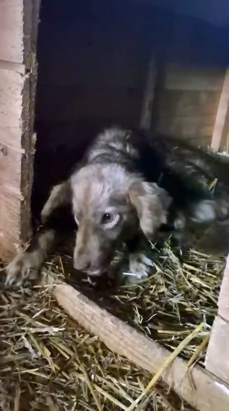 Foxa wurde im Kohlenminengebiet gefunden. Eine kleine Hündin zwischen vielen großen Hunden.