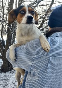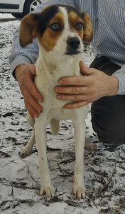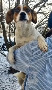 Frumosa wurde bei Eiseskälte zusammen mit ihren beiden Welpen nahe Targu Jui von Luiza gefunden. Ein Welpe ist leider kurz danach gestorben.
