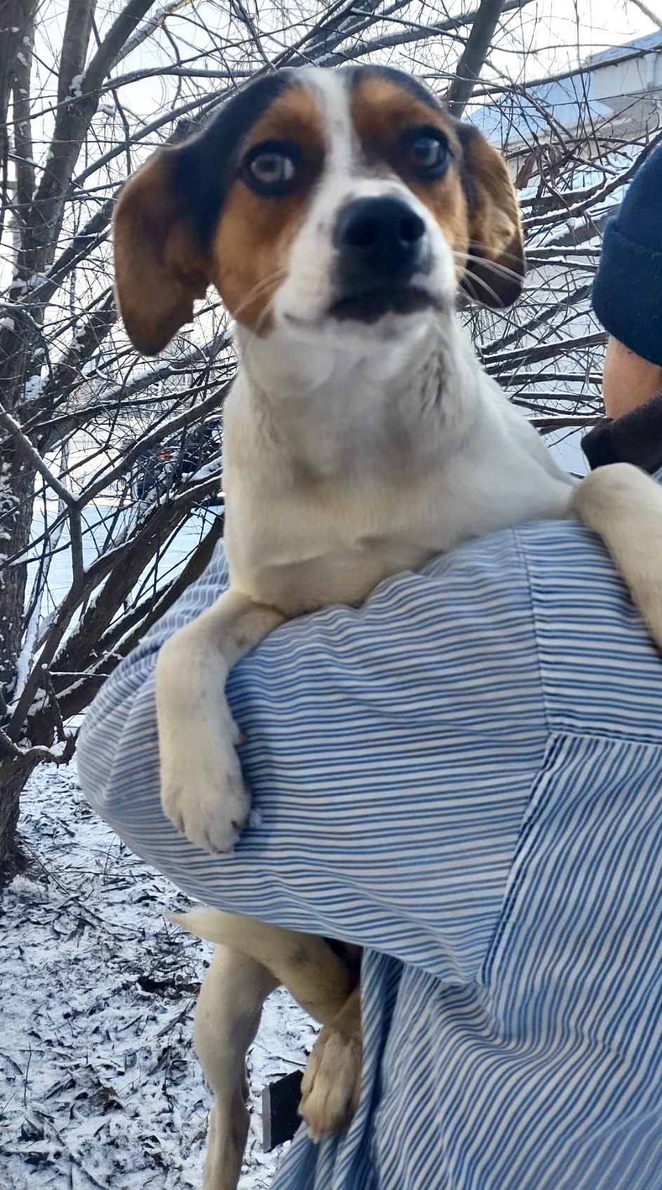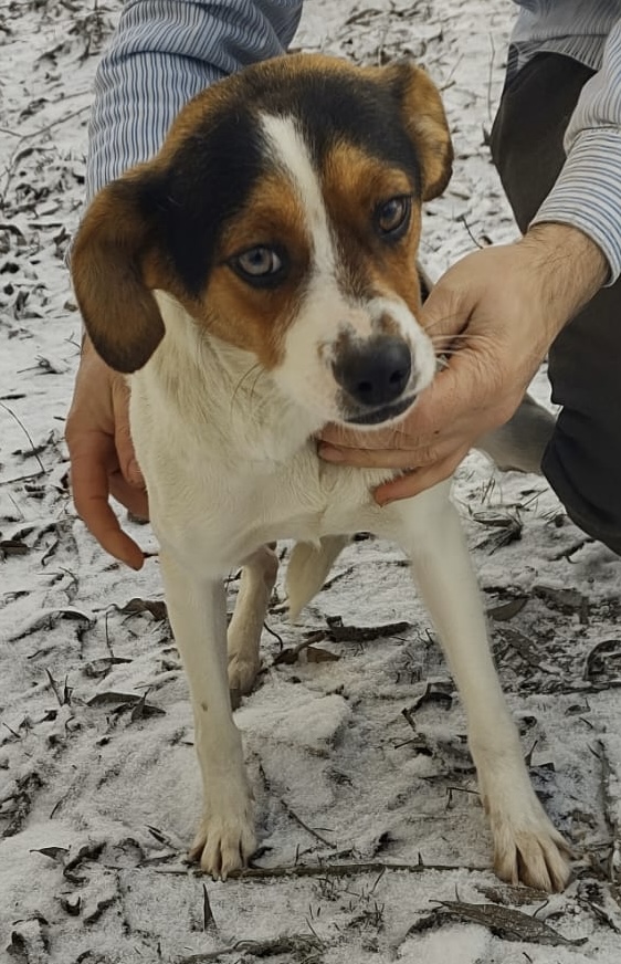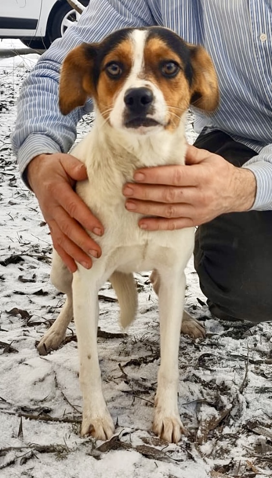 Frumosa wurde bei Eiseskälte zusammen mit ihren beiden Welpen nahe Targu Jui von Luiza gefunden. Ein Welpe ist leider kurz danach gestorben.