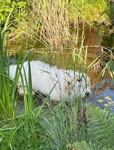 Sie liebt es im Gartenteich zu stehen, die Welt zu erkunden und geknuddelt zu werden. Sie schmust gern und sucht immer noch nach einem Lieblingsplatz, Sofa, Sessel, Körbchen, Teppich, Busch und Blumenbeet, alles wird ausgiebig getestet.