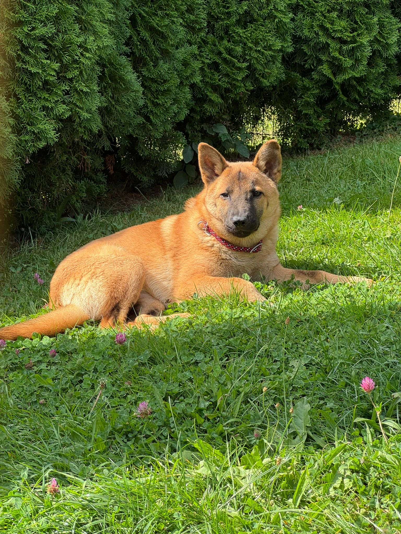 Sie liebt es im Garten zu spielen und in der Sonne zu liegen. Blödsinn machen gehört natürlich auch dazu und so mussten bereits Schuhe und Türstopper dran glauben.