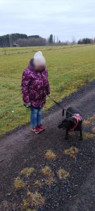 „Mittlerweile ist sie schon sehr neugierig, erkundet nach und nach das Haus. Treppen laufen möchte sie noch nicht, daher laufen wir abends und morgens um das Haus und gehen durch die Saunatüre unten rein.