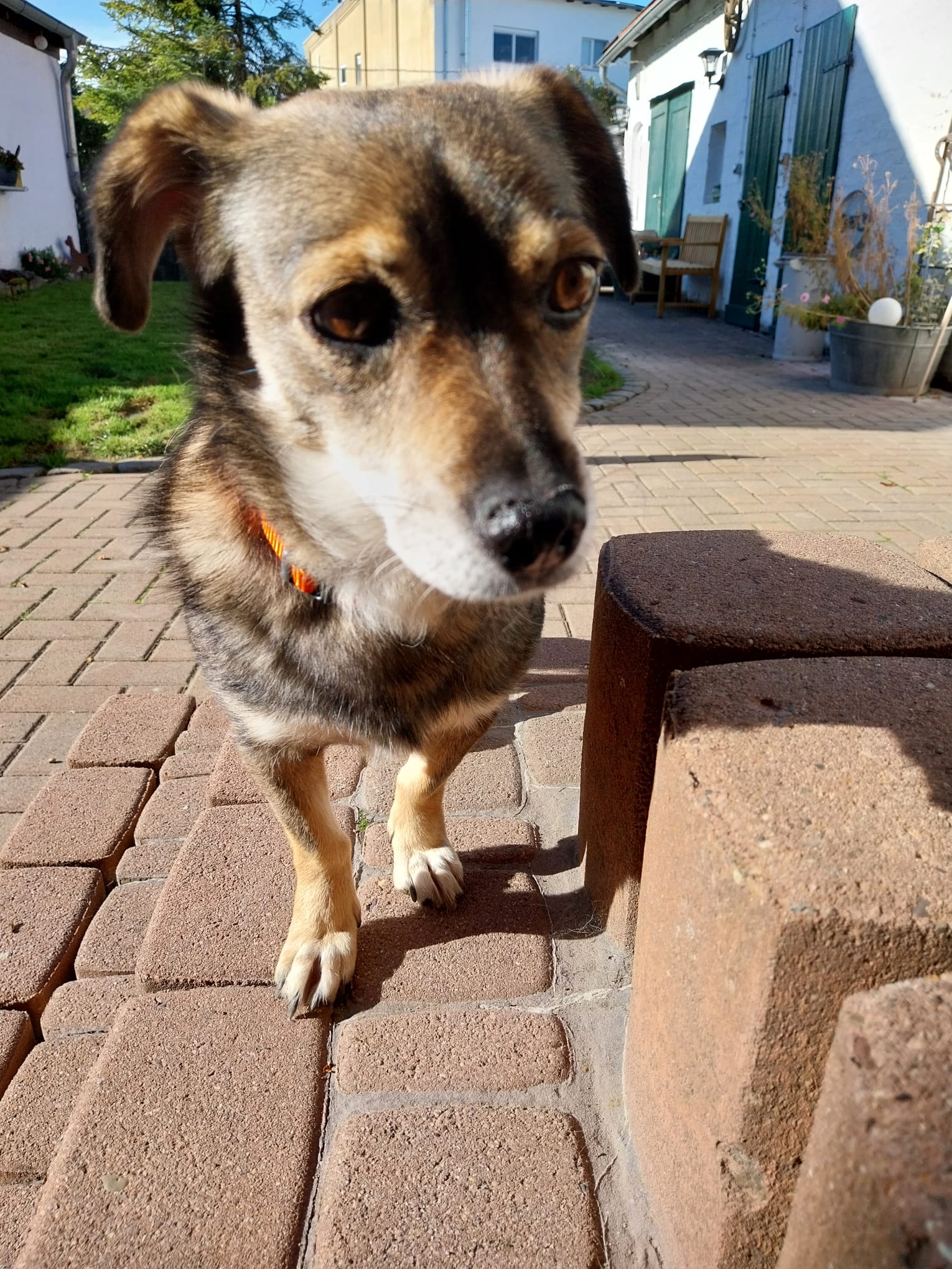 Leyla ist ein bisschen schüchtern. Gassi gehen an der Leine findet sie noch nicht so gut. Es wird aber täglich in kleinen Schritten geübt. Wenn man ihr Vertrauen hat, ist sie eine kleine Kuschelmaus und liegt gerne mit auf dem Sofa.Bei Besuchern die sie nicht kennt geht Layla auf Abstand. Die kleine Hundedame sucht eher ein ruhiges Zuhause. Sie geht bereits die Treppe hoch und runter. Kinder in der Familie sollten schon im Schulalter sein.