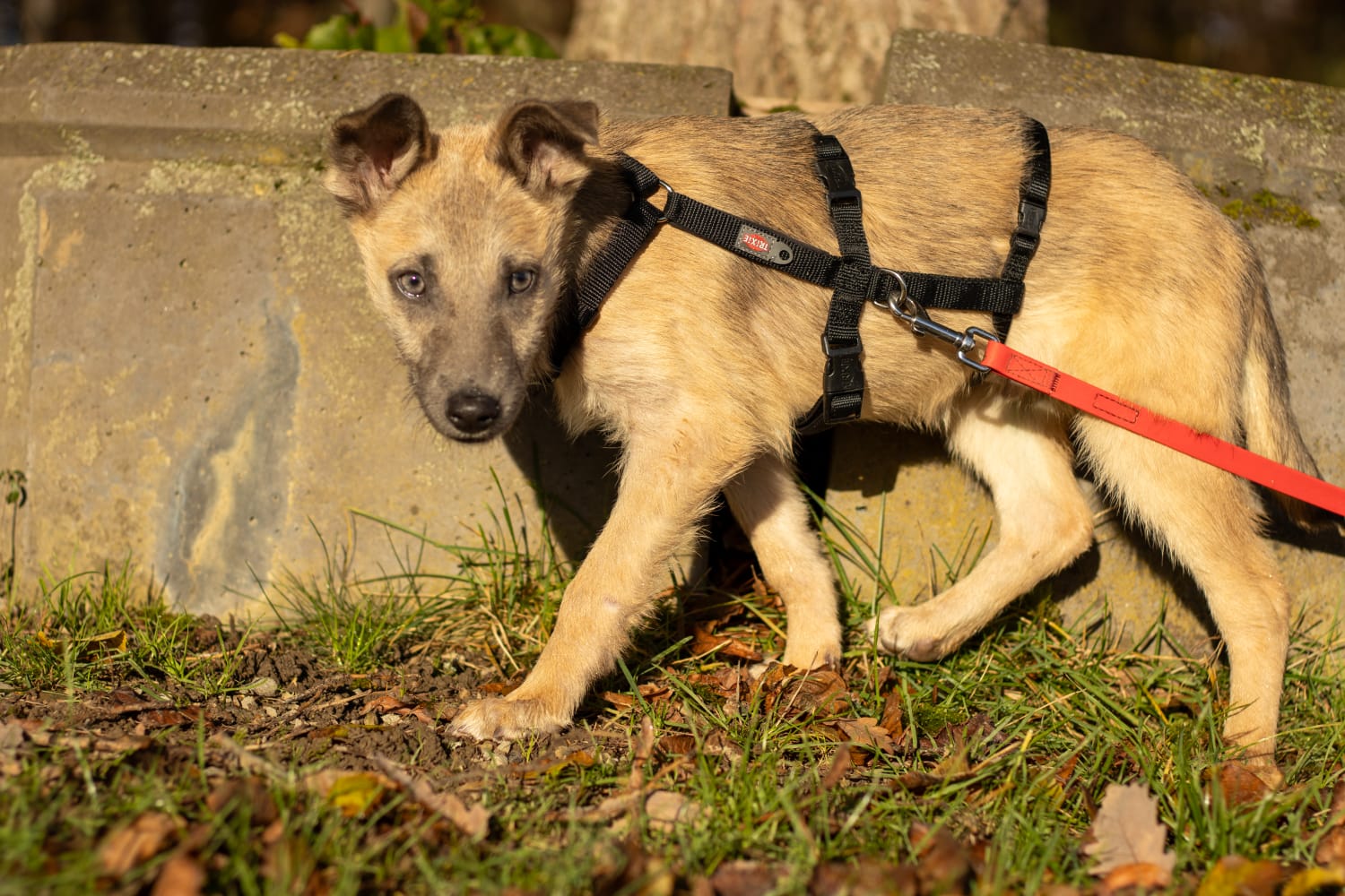 Lennard zeigt sich bei uns als ein verspielter Welpenjunge. Auch zu uns Menschen kommt er gleich an.