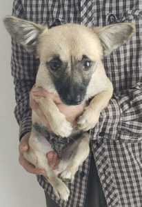 Sobald sie in Obhut war lies sie auch menschliche Nähe wieder zu. Mit anderen Hunden im Tierheim kommt sie gut aus.