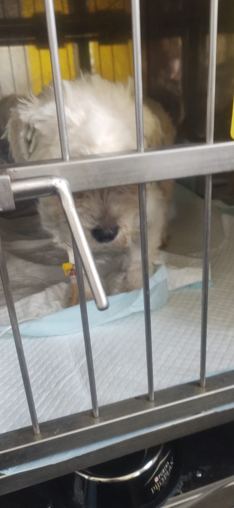 Lizzy wurde völlig verfilzt und unterernährt außerhalb einer Ortschaft gefunden. Sie musste geschoren werden und Infusionen bekommen.