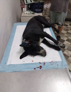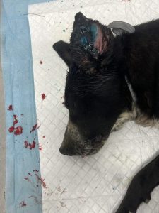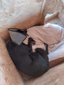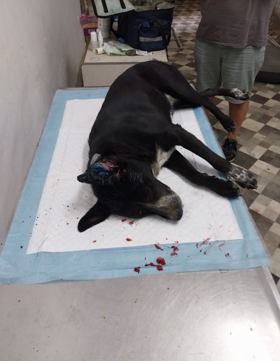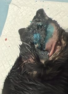 Die Behandlungen vor Ort haben nur mal kurz geholfen. Jetzt ist es wieder so geschwollen wie vorher. Unter den Tierheimbedingungen wird es fast unmöglich sein, es zum abheilen zu bekommen. Auch ihr eines Auge ist vor einiger Zeit etwas trüb geworden. Wir haben ihr zur Erleichterung auch ein spezielles Halsband umgemacht, damit sich Fliegen ect von ihr fernhalten.