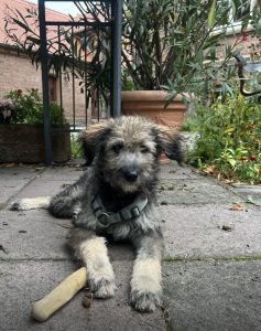 Die Straße ängstigt ihn noch ziemlich.Deswegen sollte er eher in den ländlichen Raum ziehen. In der kurzen Zeit auf der Pflegestelle hat er schon gelernt sein Geschäft zuverlässig draussen zu verrichten.Im Auto verhält er sich ruhig und genießt dabei zu sein.Verschiedene Bodenbeläge meistert er mit Bravour und als Homeoffice Hund hat er sich auch schon bewährt.