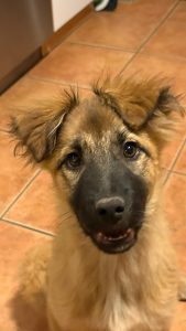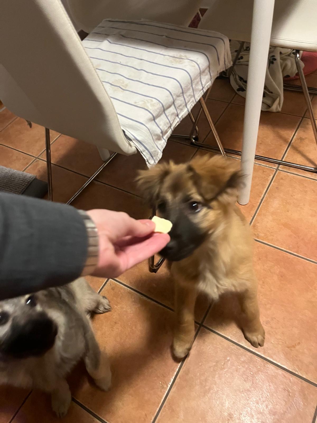 Matilda zeigt sich hier als offene, sehr menschenbezogene und ausgesprochen fröhliche junge Hündin. Sie ist – im Vergleich zu ihrer Schwester – die energiegeladenere von beiden: welpentypisch aufgedreht, verspielt und voller Lebensfreude.