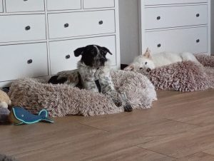 Mio zeigt sich ausgesprochen verträglich und lernt in einem unglaublichen Tempo. Schon nach zwei Tagen lief er problemlos an der Leine, Autofahren ist für ihn überhaupt kein Problem und mit jedem Tag schenkt er uns mehr Vertrauen.