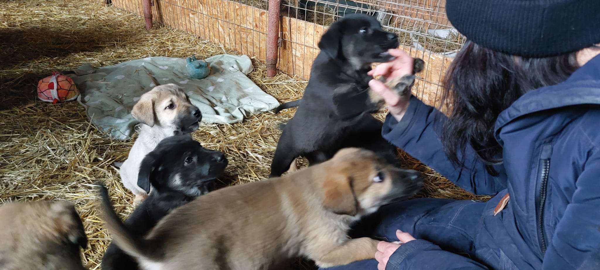 Nesra lebte mit ihrer Mutter Netti und ihren 5 Geschwistern auf einem Friedhof. Das sie dort bei der Eiseskälte in einer Blechhütte überlebt haben grenzt an ein Wunder. Ohne die Fütterung einer tierlieben Frau hätten sie es aber wahrscheinlich nicht geschafft. So hatte die Mutter genügend Energie um ihre Welpen gut zu säugen und musste nicht immer wieder lange Märsche machen, um Futter zu suchen.