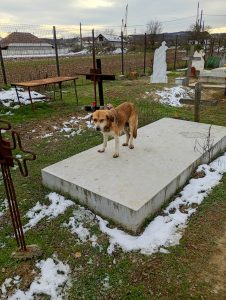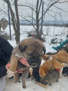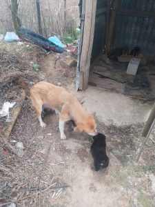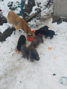 Netti lebte mit ihren 6 Welpen auf einem Friedhof und wurde dort von einer tierlieben Frau versorgt. Es war bitterkalt zu dieser Zeit. Als Unterkunft hatten sie nur eine Blechhütte. Aber diese und die Versorgung durch die Frau, hat geholfen, dass Netti ihre Welpen durchgebracht hat.