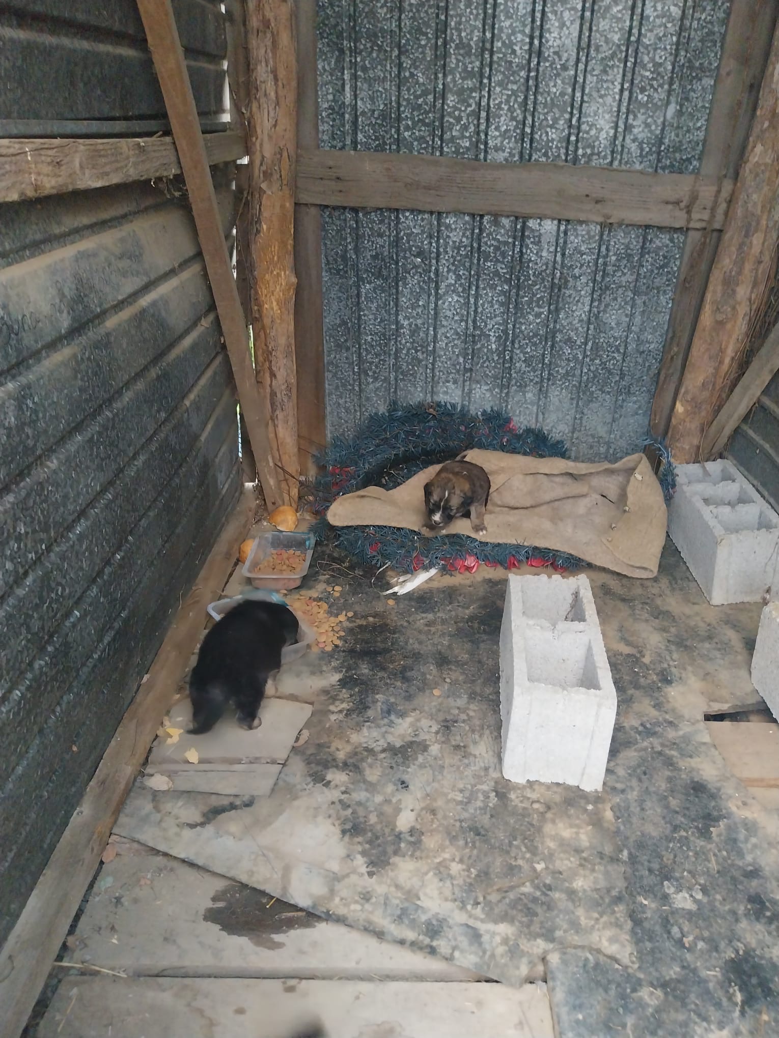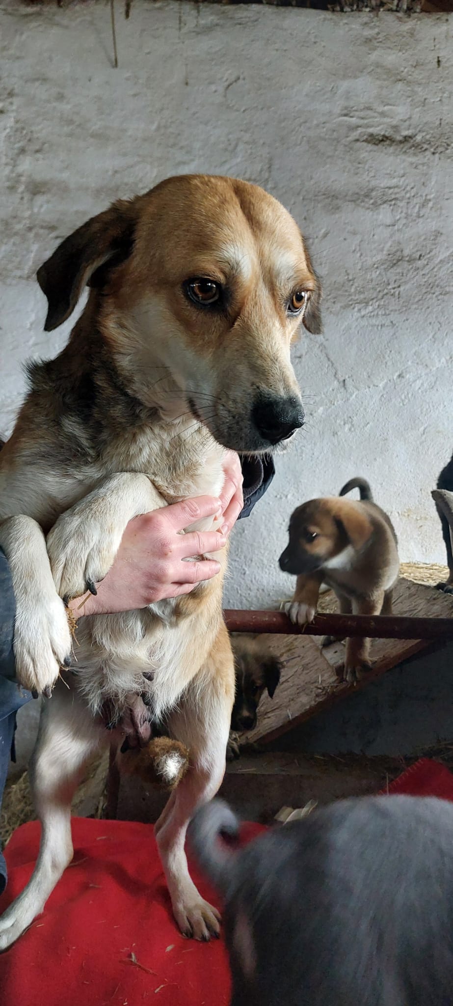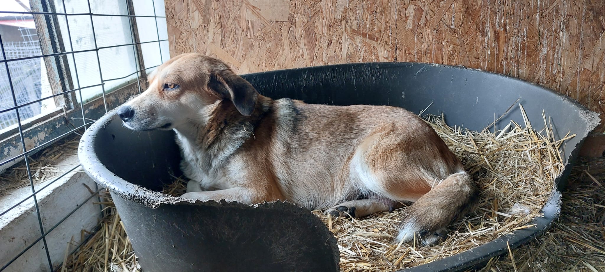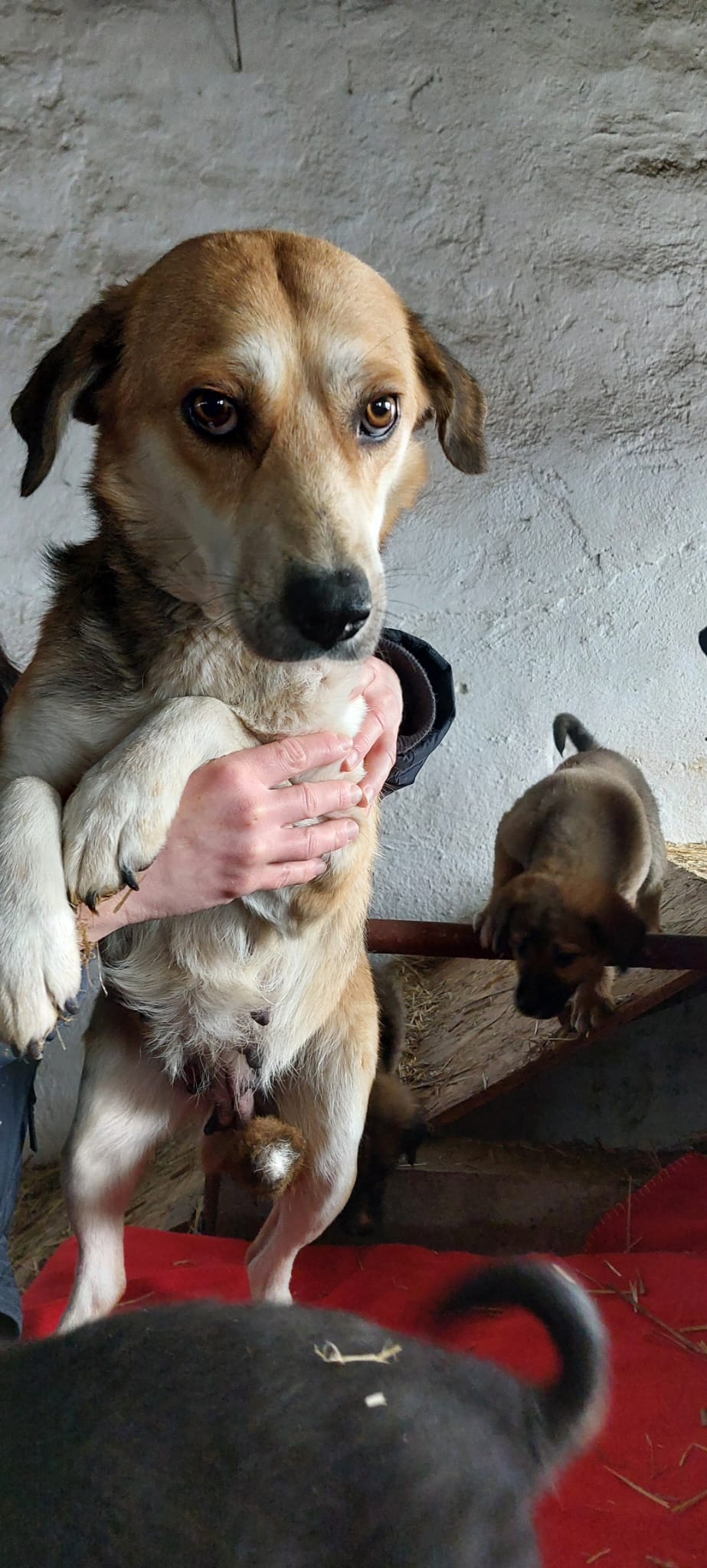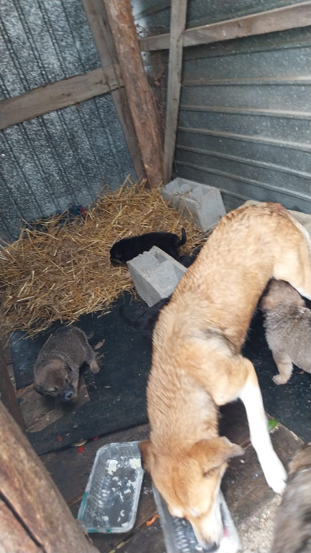 Netti lebte mit ihren 6 Welpen auf einem Friedhof und wurde dort von einer tierlieben Frau versorgt. Es war bitterkalt zu dieser Zeit. Als Unterkunft hatten sie nur eine Blechhütte. Aber diese und die Versorgung durch die Frau, hat geholfen, dass Netti ihre Welpen durchgebracht hat.