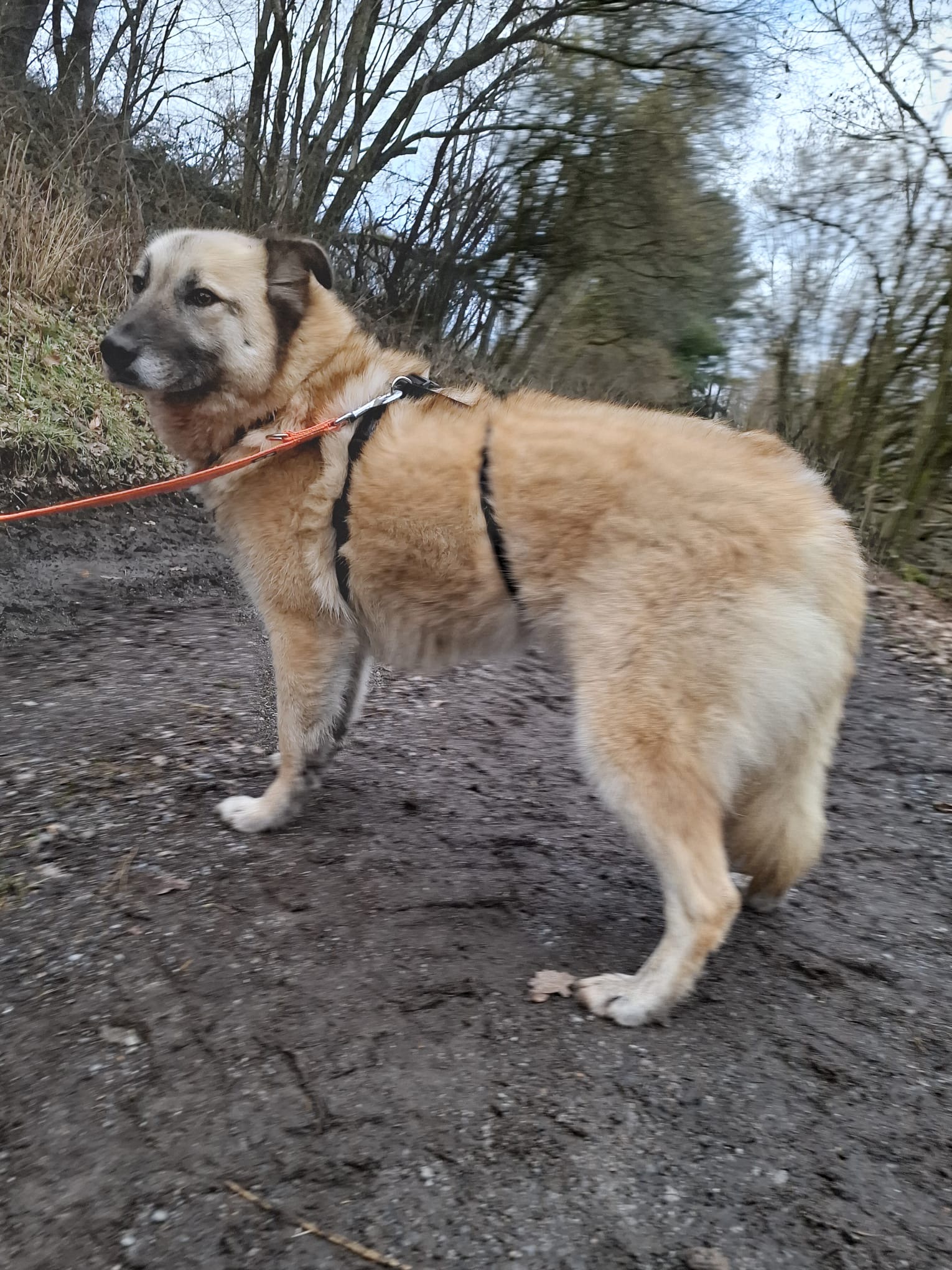 Gassigehen und das Tragen eines Geschirrs haben von Anfang an wunderbar geklappt.