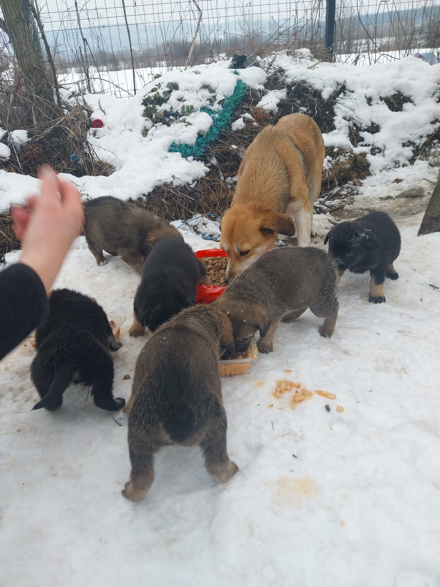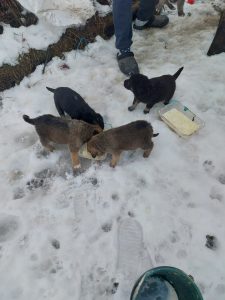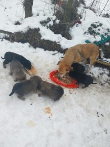 Noel lebte mit seiner Mutter Netti und seinen 5 Geschwistern auf einem Friedhof. Das sie dort bei der Eiseskälte in einer Blechhütte überlebt haben grenzt an ein Wunder. Ohne die Fütterung einer tierlieben Frau hätten sie es aber wahrscheinlich nicht geschafft. So hatte die Mutter genügend Energie um ihre Welpen gut zu säugen und musste nicht immer wieder lange Märsche machen, um Futter zu suchen.