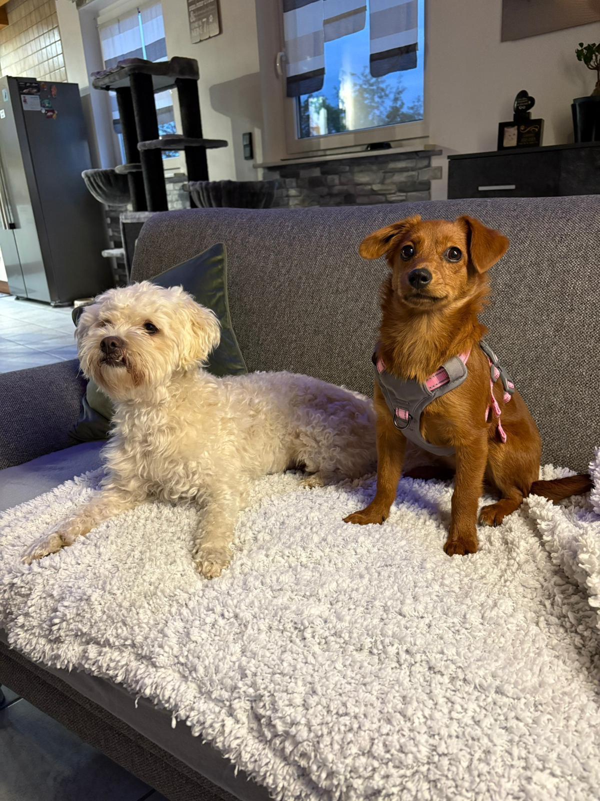 Sora macht super Fortschritte, sie ist total auf Mailo fixiert. Sie geht prima draußen groß und klein machen. Sie liebt es mit Mailo im Garten zu toben und geht wie eine Rakete ab. Sie hat auch schon andere Hundebekanntschaften gemacht und dies klappt auch super. Mit Katzen kommt sie auch super zurecht, da wir drei haben.
