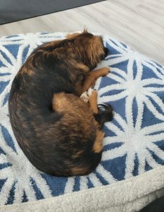 Sie ist vorsichtig und wollte nicht unbedingt von Anfang an Kontakt zum Menschen. Aber durch die liebevolle geduldige Art der PS hat sie schnell Vertrauen gefasst. Und entwickelt sich schnell und in eine schöne Richtung. Sie ist geräuschresistent – diese beeindrucken sie nicht. Auch draußen ist das so. Das Vertrauen zum Menschen ist angelegt, aber noch ausbaufähig. Kuscheln mit Bezugspersonen ist auf jeden Fall schon toll!