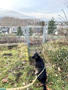 Ob mit Führ- oder Schleppleine, sie geht ganz brav spazieren und erfreut sich an anderen Hundekontakten 🐕