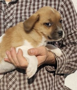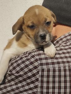 Paula hat sich zu einem hübschen Welpenmädchen gemausert. Sie ist verspielt mit ihrem Bruder Pipo. Zu fremden Menschen ist sie etwas schüchtern.