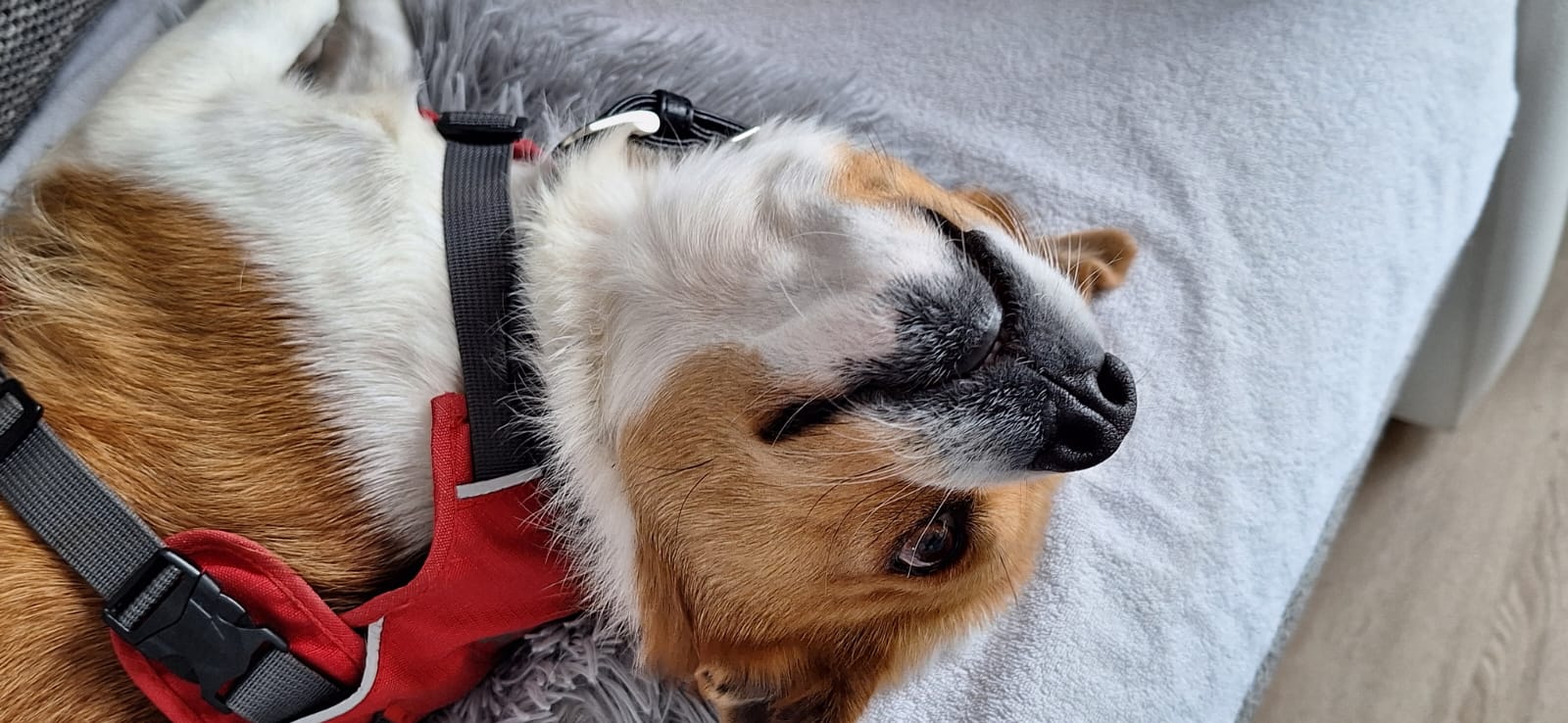 Inzwischen fühlt sie sich richtig wohl. Am liebsten kuschelt sie auf der Couch unter der Decke ganz nah am Frauchen.