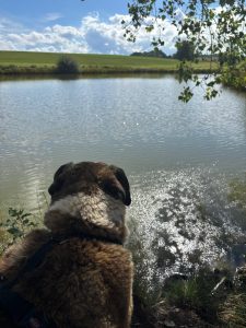 Nach ein paar Tagen hat er sich herausgewagt und endlich auch gefressen. Das Treppensteigen und die Welt da draußen waren am Anfang ziemlich gruselig für ihn. Aber mit Geduld und Ruhe flitzt er nun jetzt die Treppen herunter, staunt über die Wiesen und Felder und war auch gleich im Wasser. Es klappt jeden Tag besser mit der Gassirunde und er fährt auch schon im Auto mit.