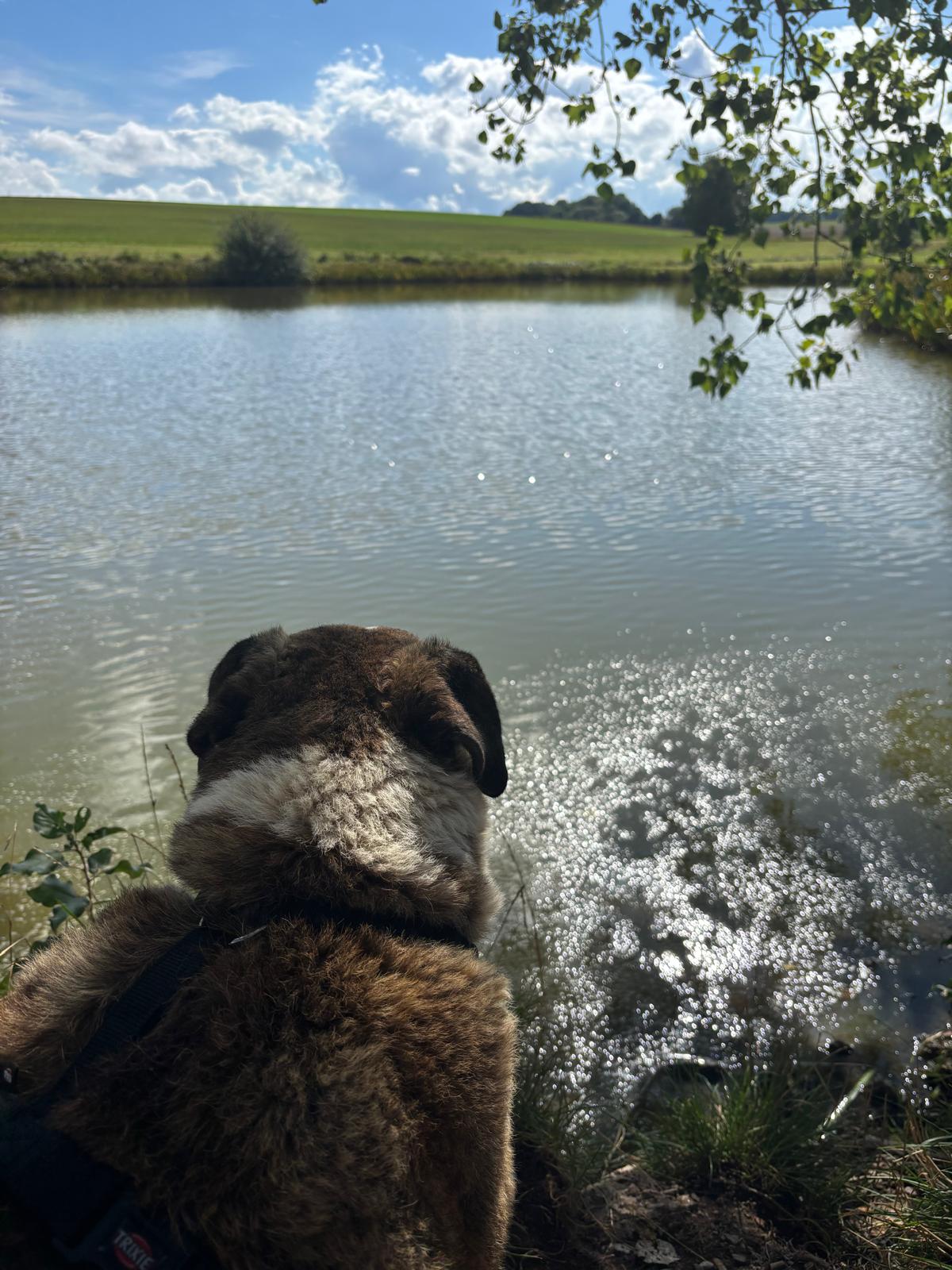 Nach ein paar Tagen hat er sich herausgewagt und endlich auch gefressen. Das Treppensteigen und die Welt da draußen waren am Anfang ziemlich gruselig für ihn. Aber mit Geduld und Ruhe flitzt er nun jetzt die Treppen herunter, staunt über die Wiesen und Felder und war auch gleich im Wasser. Es klappt jeden Tag besser mit der Gassirunde und er fährt auch schon im Auto mit.